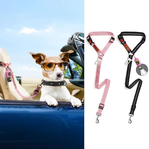iPetba Avtagbart hundsäkerhetsbälte för bil, justerbar säkerhetssele med elastisk bungee-buffert, fasthållningsskydd för husdjur och koppel som säkrar nackstöd för små stora hundar (rosa)