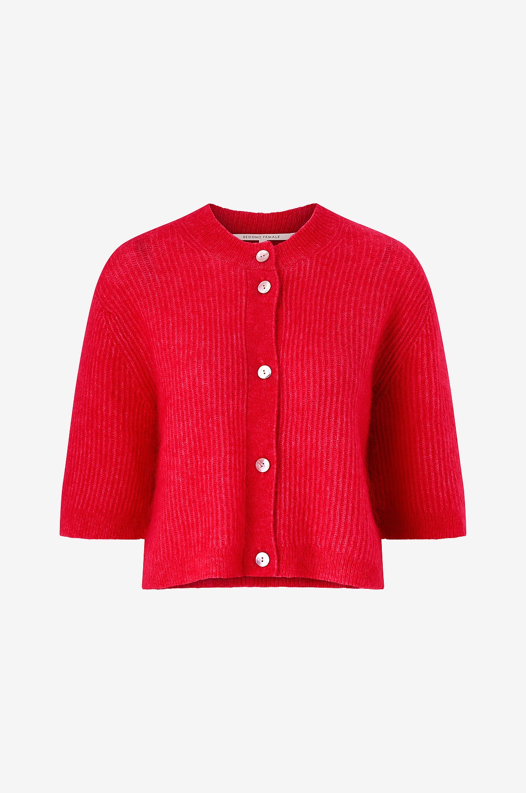 Second Female - Cardigan Andrea Knit Rib Cardigan - Röd
