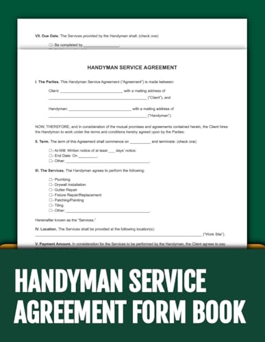 Handyman Service Agreement Form Book: 30 Legal Contracts for Contractors and Clients, Customizable Agreements to Secure Services, Define Payments, and Ensure Compliance | 8.5 x 11 inches.