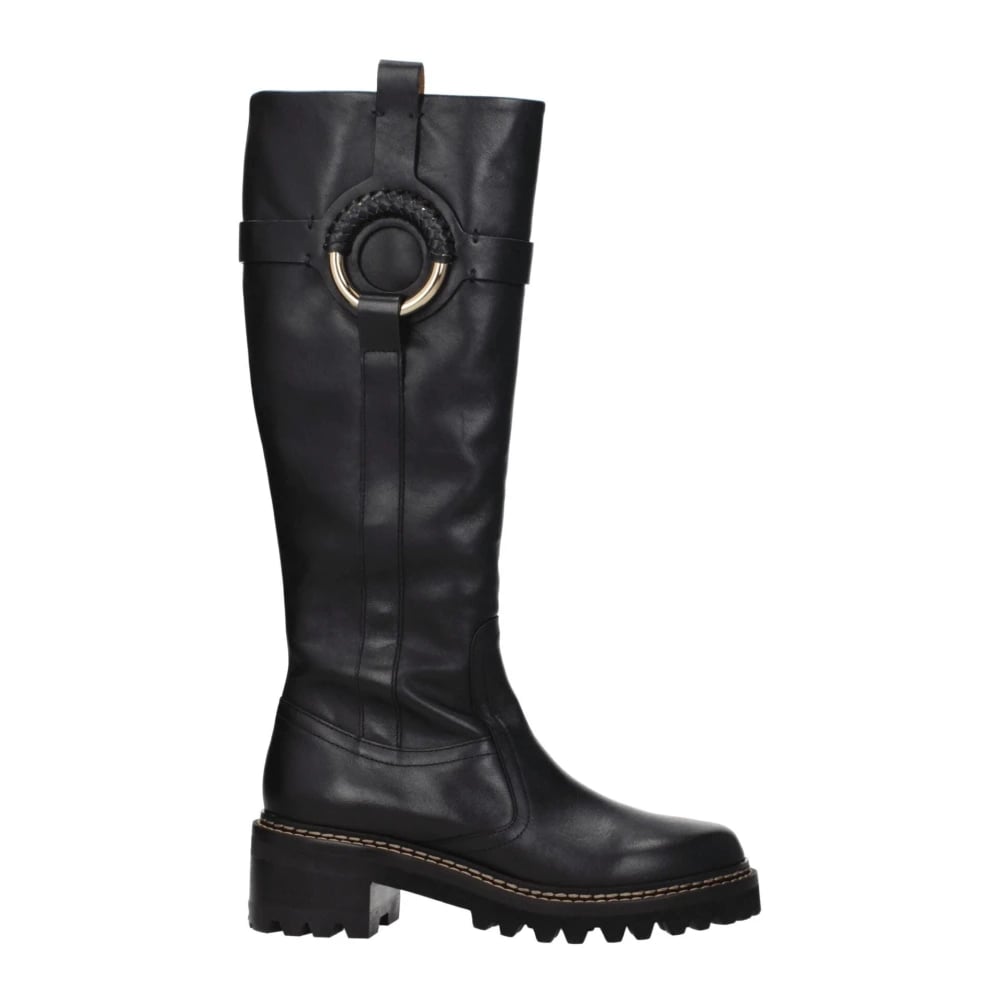 See by Chloé, Skor , Dam, 36 EU, Läder, Svart Läder Över Knäet Stövlar