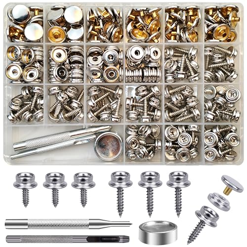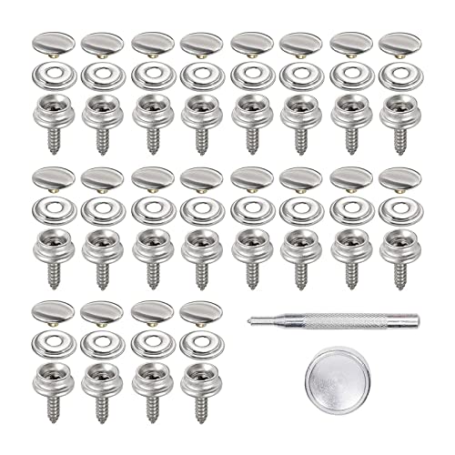 Kajkey Set med 62 tryckknappar, canvas snaps fästare, metallknappar, presenningsskruvar, canvas tryckknappsskruv rostfritt stål med 2 fixeringsverktyg för presenning, fartyg, möbler, segelduk, biltält