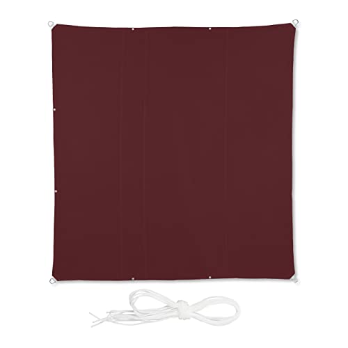 Relaxdays Solsegel, 5 x 5 m, vattenavvisande, polyester, spännlinor, segelduk kvadratisk, trädgård, balkong, mörkröd
