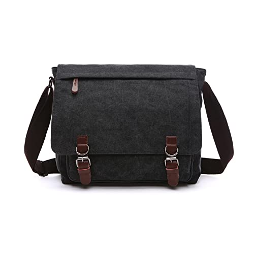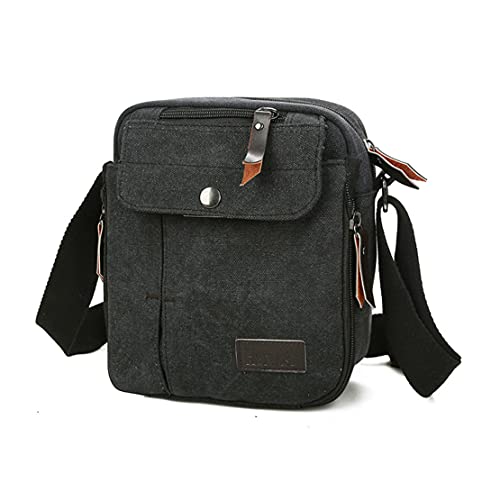 POPOTI Herr axelväska, axelväska segelduk liten väska handväska kanvas portfölj tote multifunktionell vintage ryggsäck messenger bag, svart, Einheitsgröße
