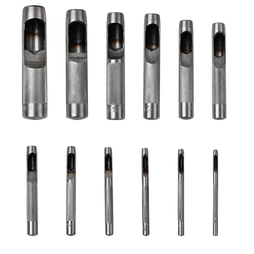 12 stycken läderhålslagare verktyg, runt stål ihåligt stansset, håljärnset för läder 3 mm till 19 mm, håljärn hålslag fräs läder punch verktyg för klockarmband bälte segelduk papper plast