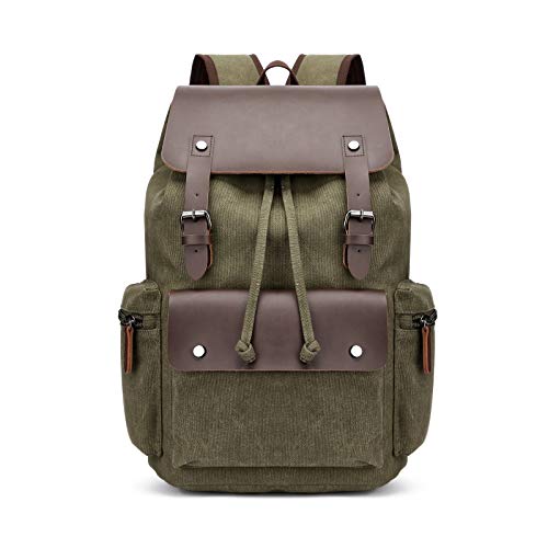 FANDARE Laptop-ryggsäck, med dragsko, för 15,6 tum laptop, skolryggsäck av segelduk, för män och kvinnor, perfekt för resor och universitetcampus, Grön