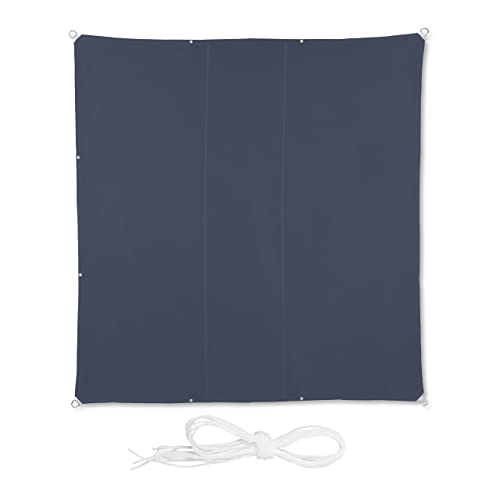 Relaxdays Solsegel, 4,5 x 4,5 m, vattenavvisande, PE-tyg, spännlina, segelduk kvadratisk, trädgård, balkong, grå