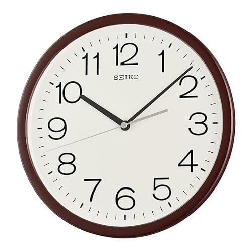 Seiko väggklocka tyst svepande sekundvisare mörkbrun massiv ekfodral, Brun, One Size, Traditionell