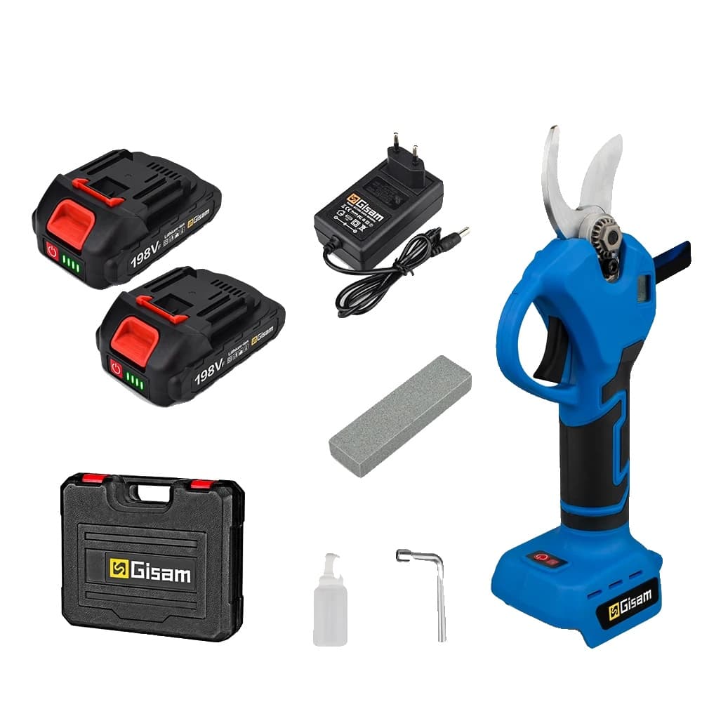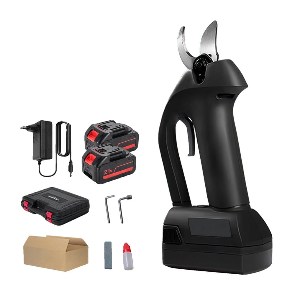 Elektrisk sekatör, borstlös motor, blad av högkvalitativt kolstål,2 Batteri, EU