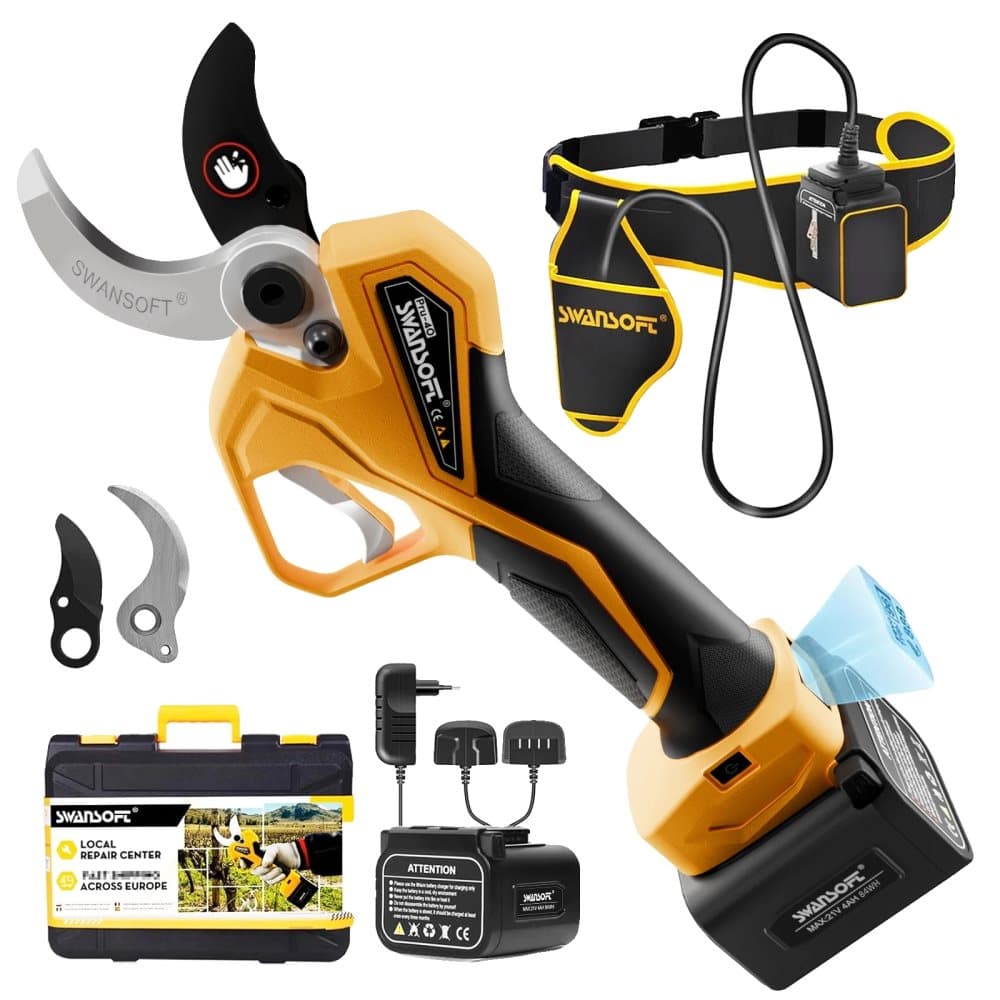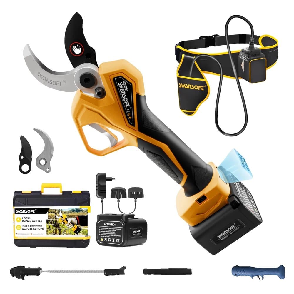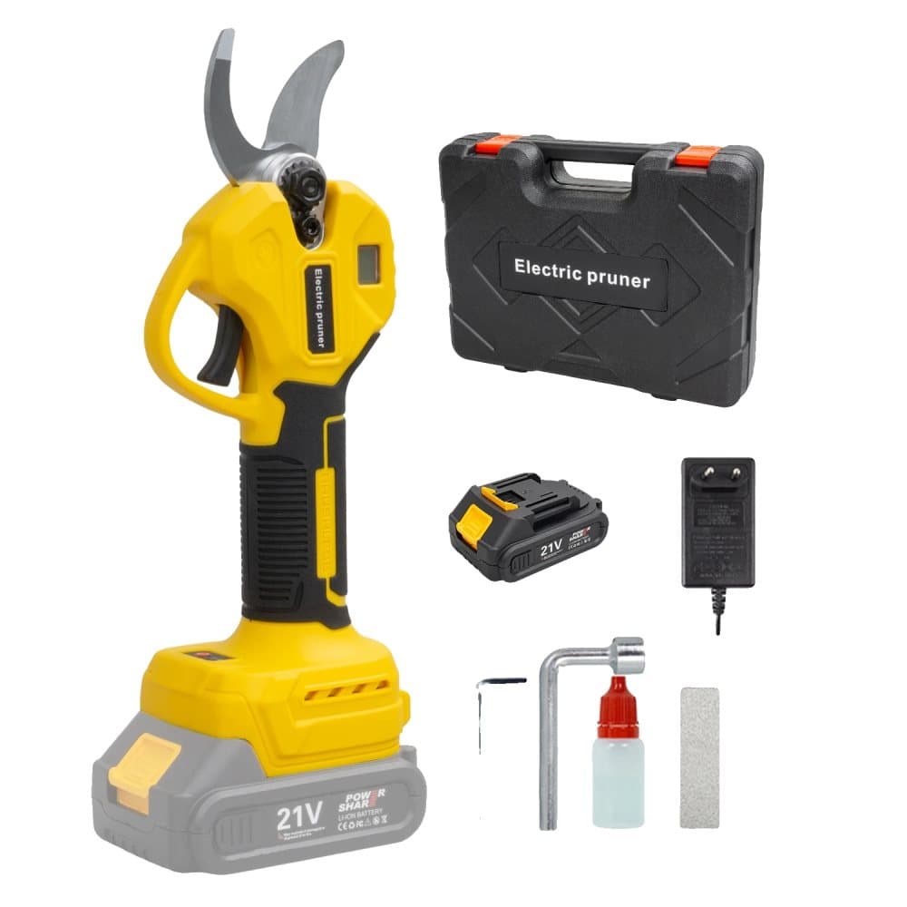 Elektrisk Sekatör, 21V 4Ah Batteri, Justerbart Käft, 1050W Effekt,GUL/SVART