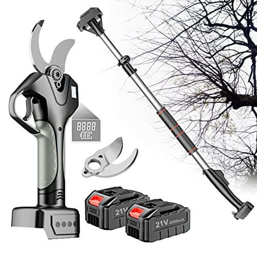Sladdlös elektrisk 45mm trädbeskärningssax med förlängningsstång,Elektrisk grenbeskärare Professionell kraftfull sekatör,2/3 batteri och 1 laddare ingår (Color : 2 Battery, Size : 2 blade)