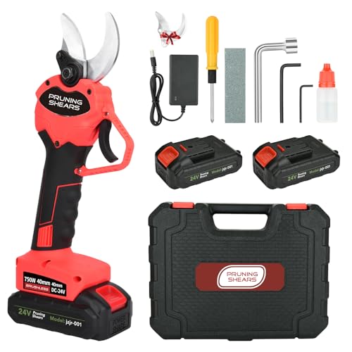 40 mm trådlös elsekator: Elektrisk sekatör med 2 x 3 000 mAh batteri, SK5 rostsäker trädgårdsskärare med säkerhetslås (röd)