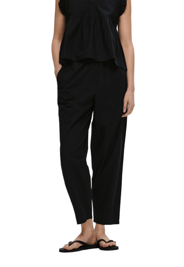 Selected Femme BOMULLSSYDD BYXOR MED HÖG MIDJA Svart