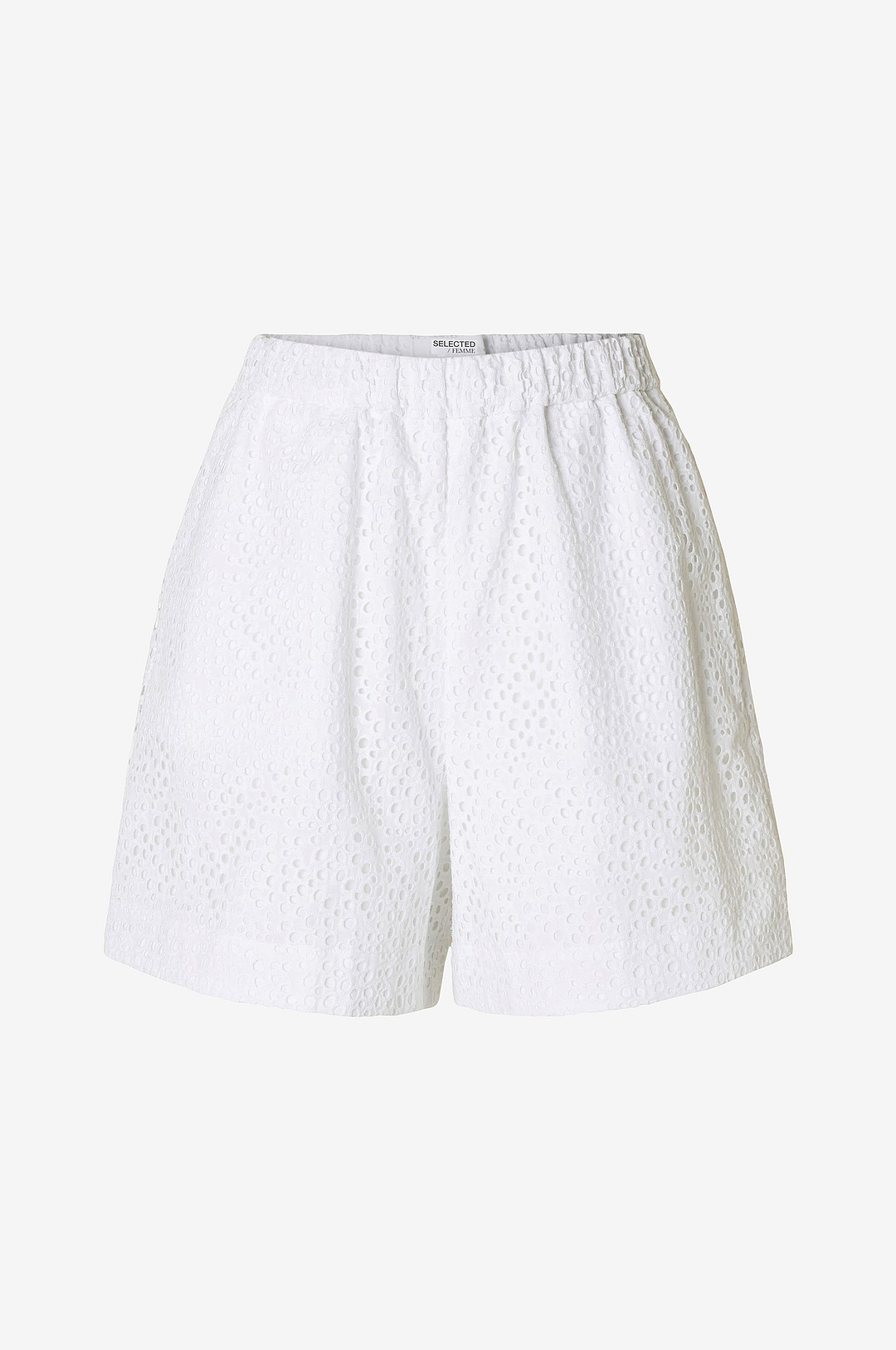 Selected FEMME - Shorts slfLaerke HW Wide Broderi Ang Short - Vit