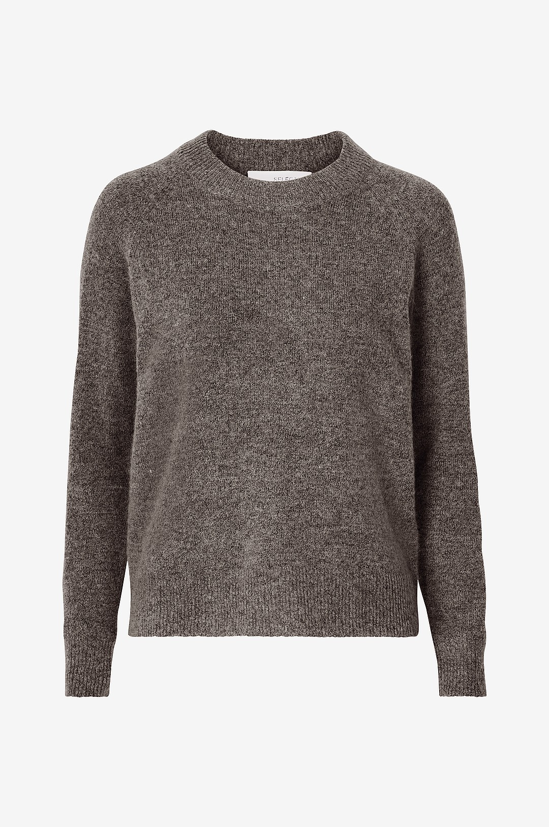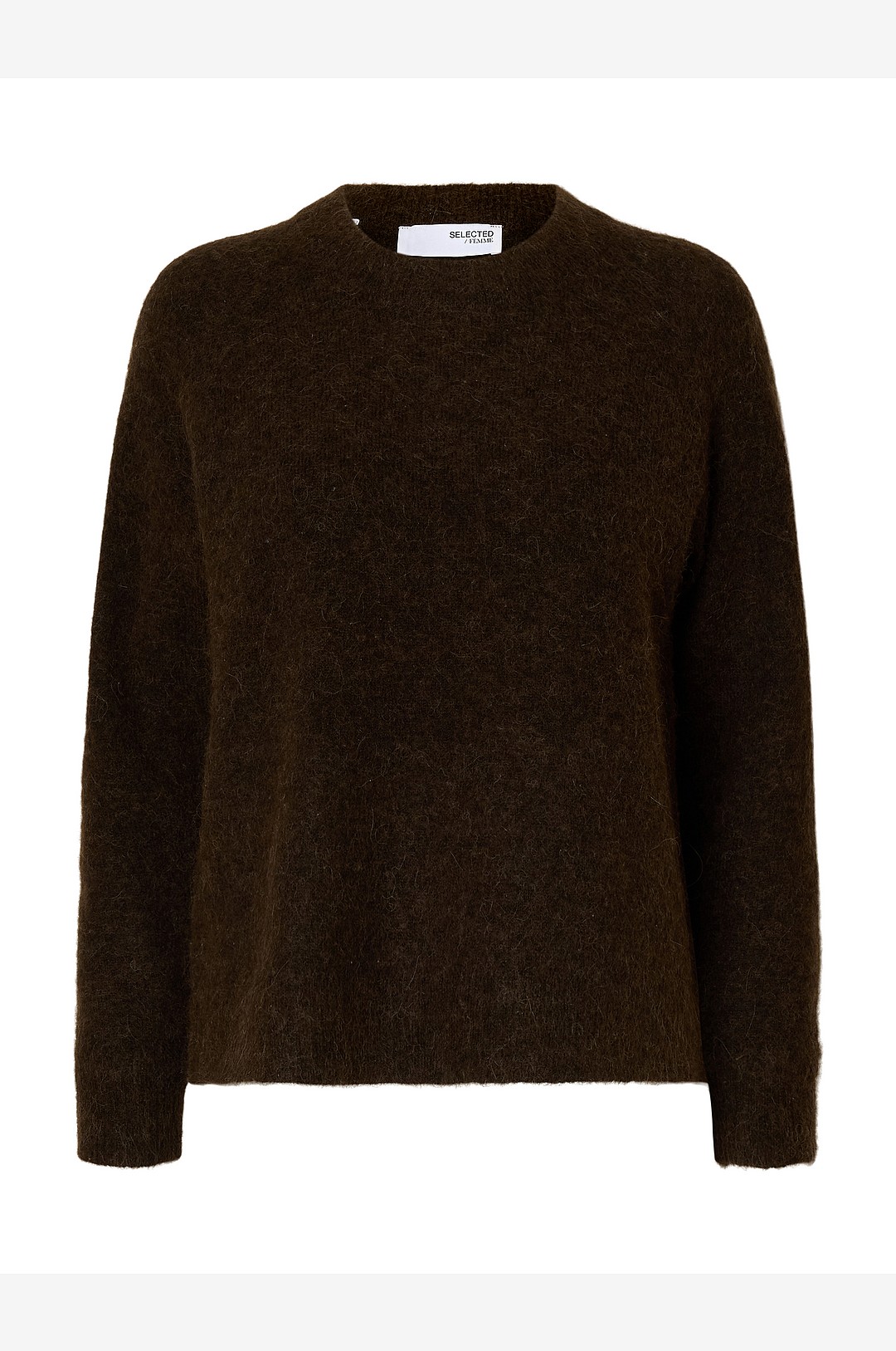 Selected FEMME - Tröja slfLulu LS Knit O-neck - Brun