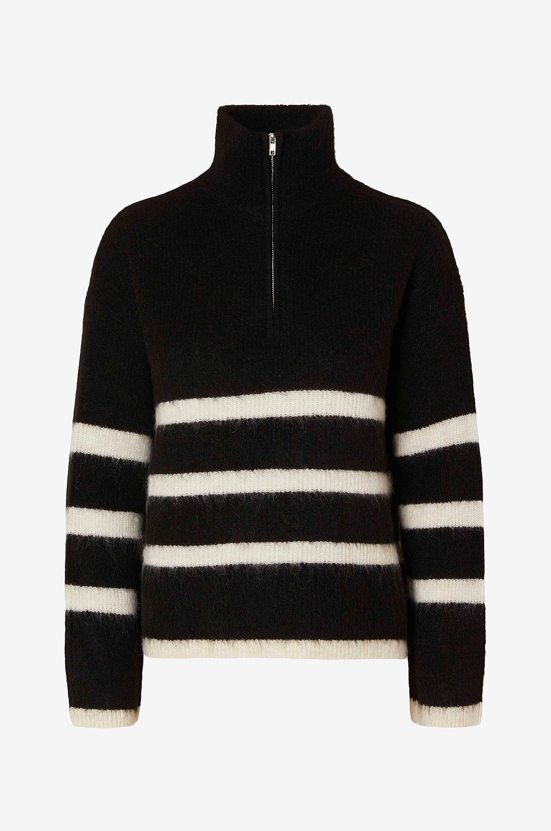 Selected FEMME - Tröja slfMaline LS Knit Half Zip - Svart