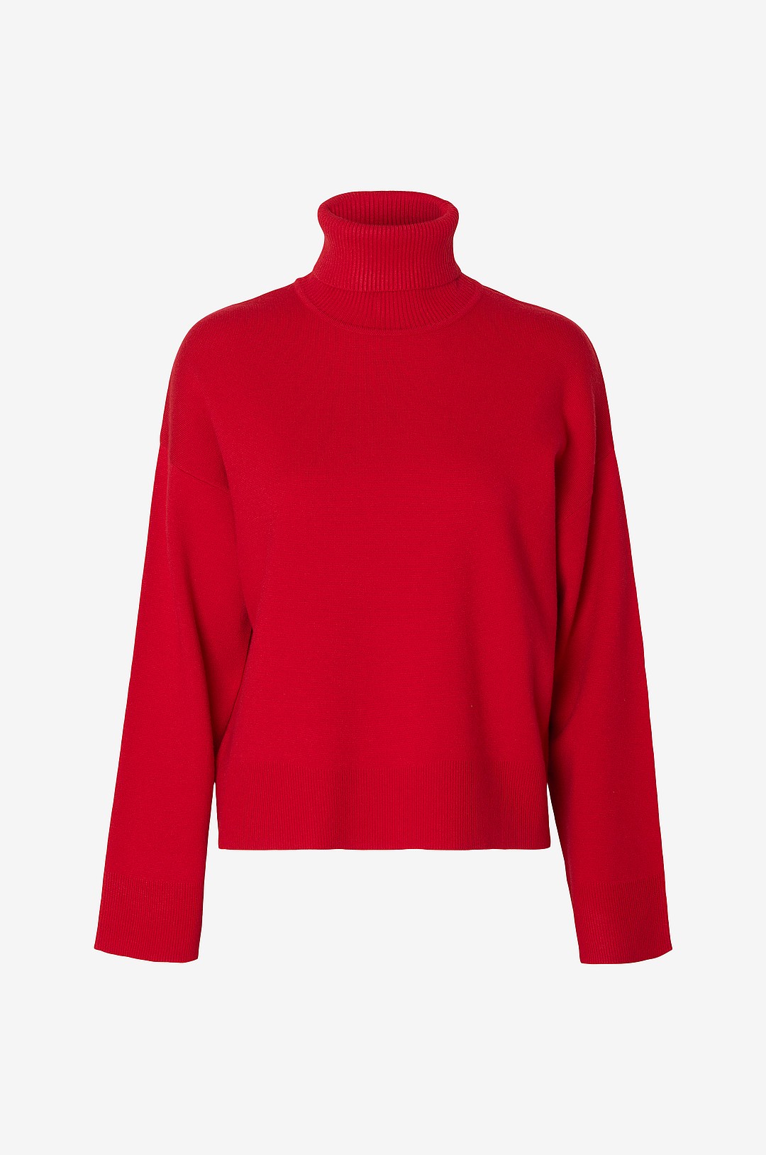 Selected FEMME - Tröja slfKamma LS Knit Roll Neck - Röd