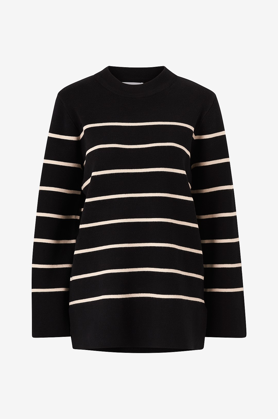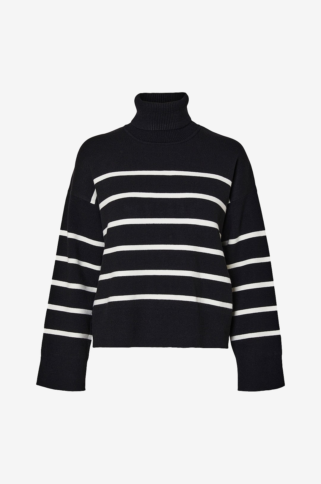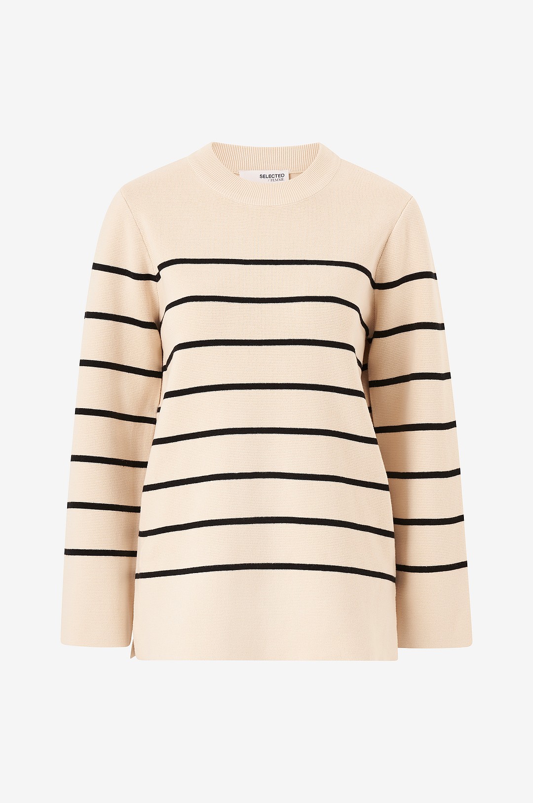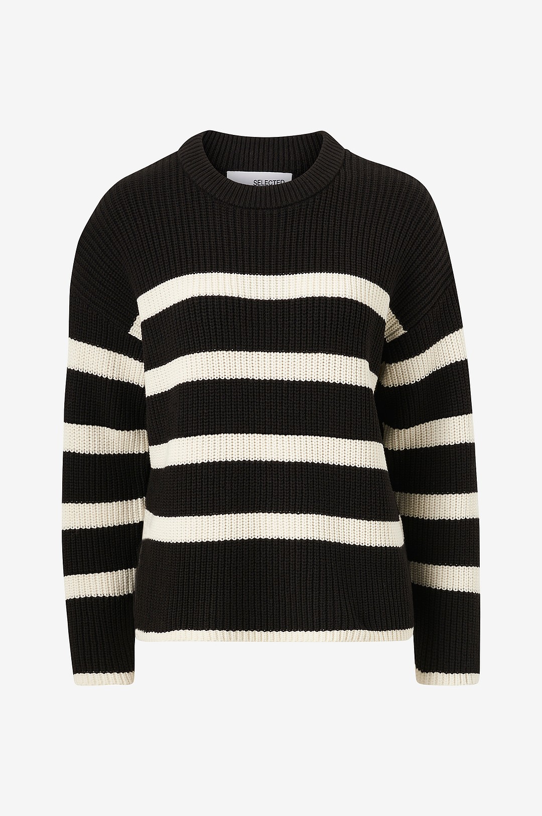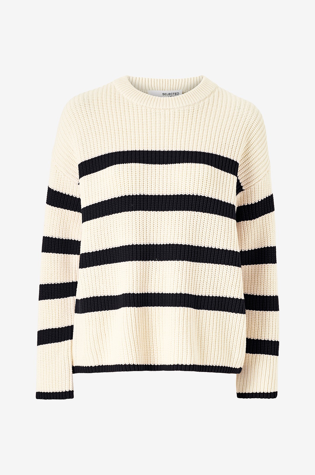 SELECTED FEMME stickad tröja för kvinnor oversize, Svart/ränder: björk, S