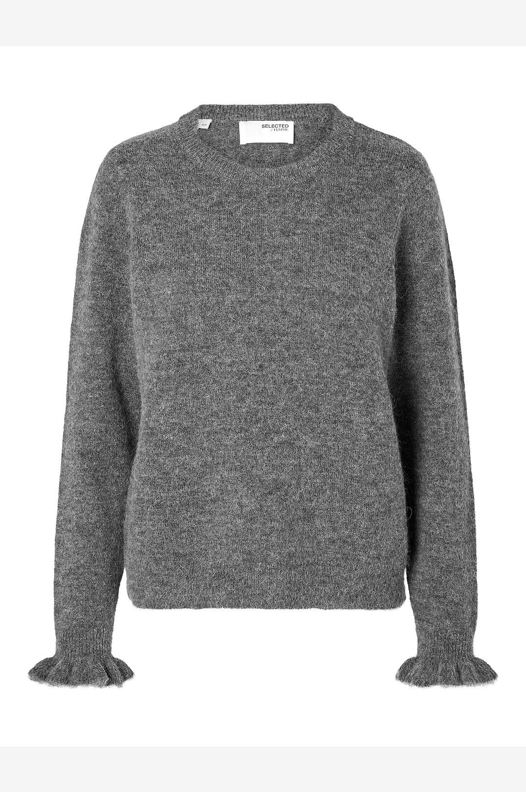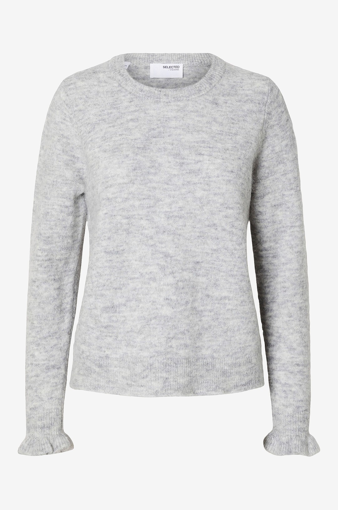 Selected FEMME - Tröja slfLulu LS Knit Frill Cuff O-neck N - Grå