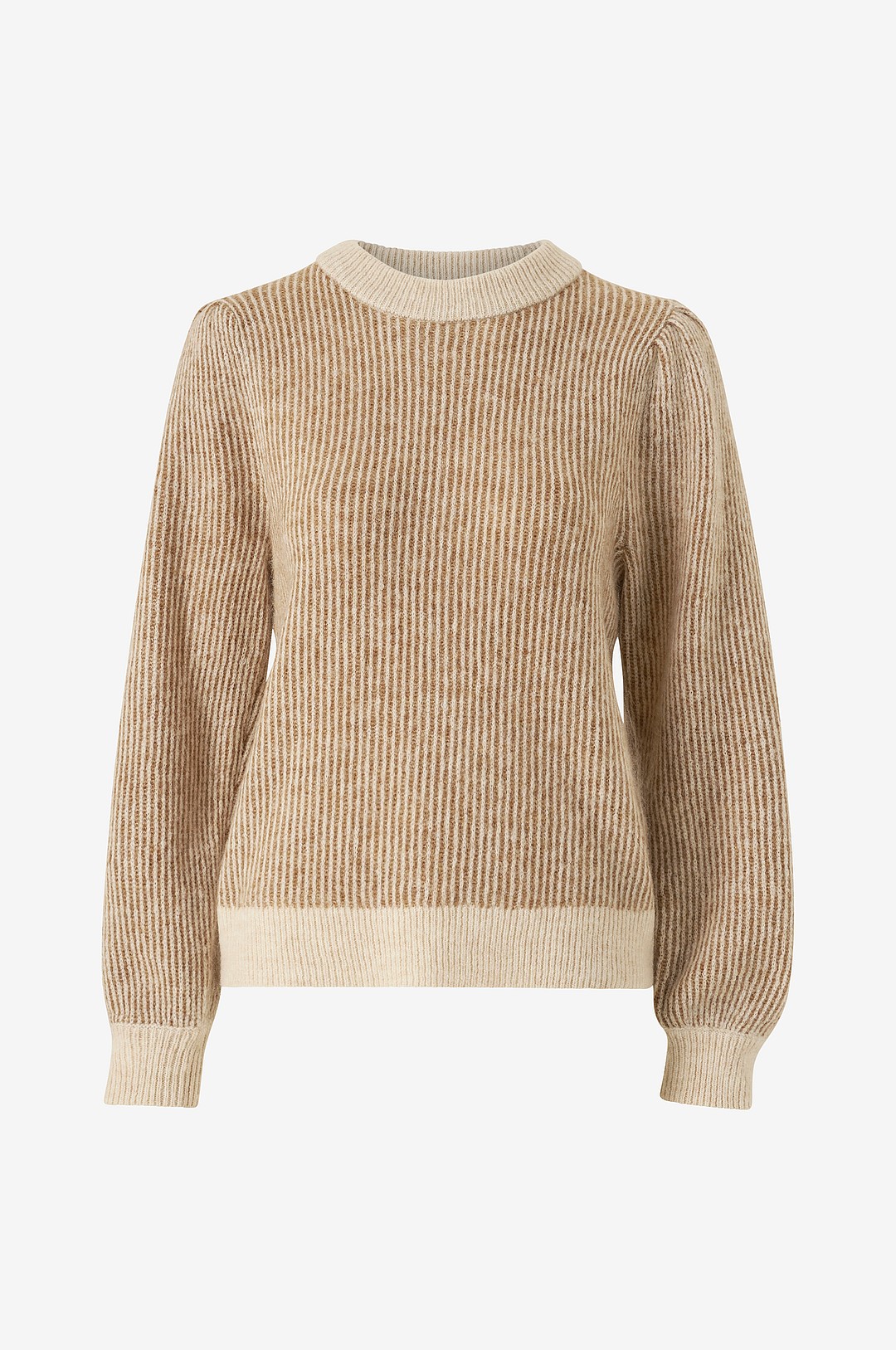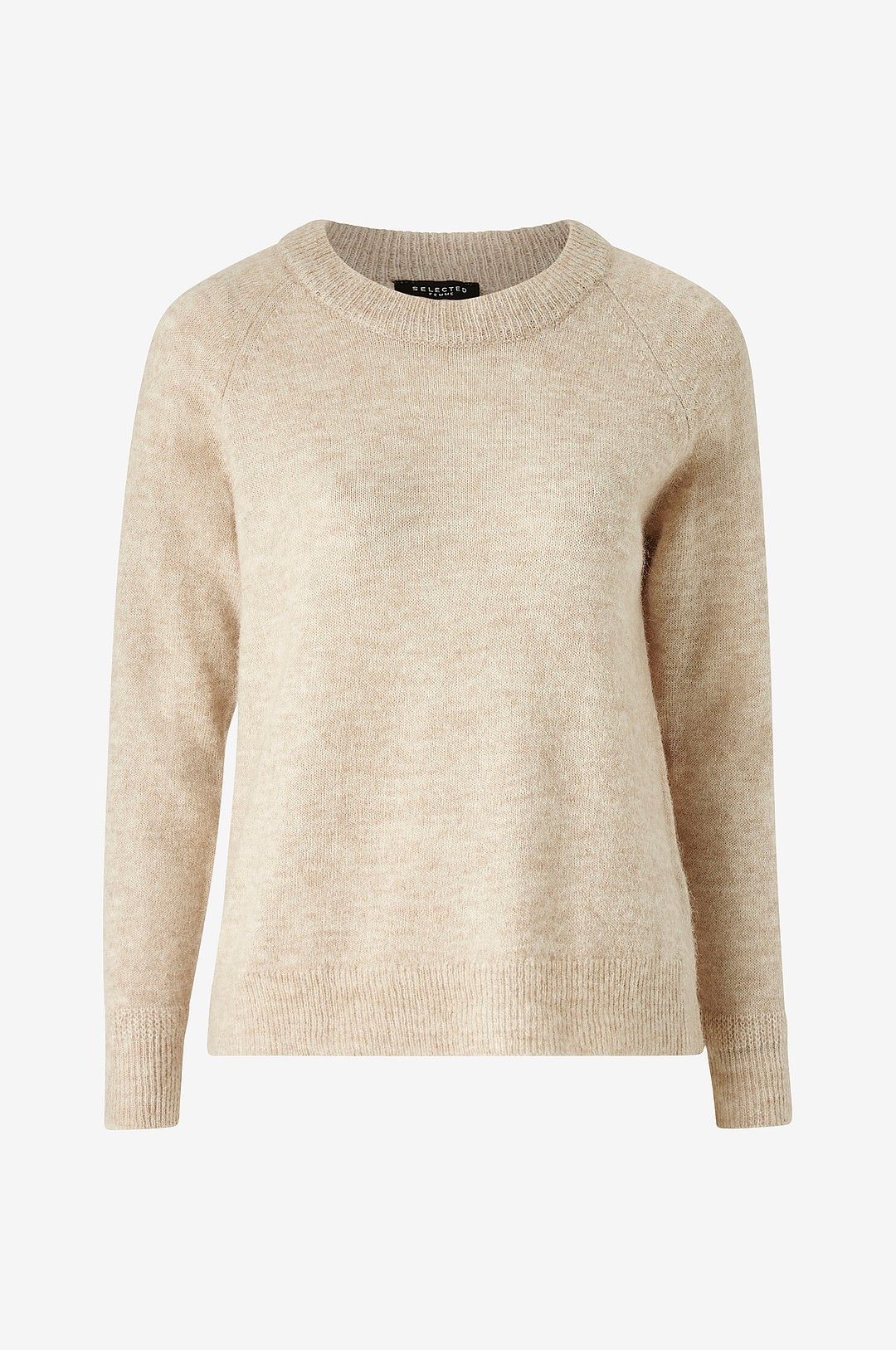 Selected FEMME - Tröja slfLulu LS Knit Rib O-neck - Beige