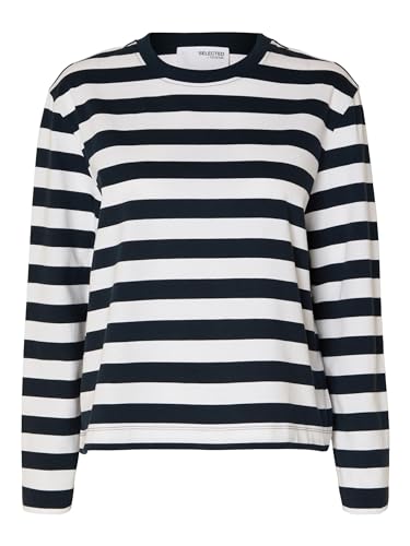 SELECTED FEMME Damer Slfessential Ls Striped Boxy Tee Noos långärmad tröja, Mörk safir/ränder: ljus vit – bred, S