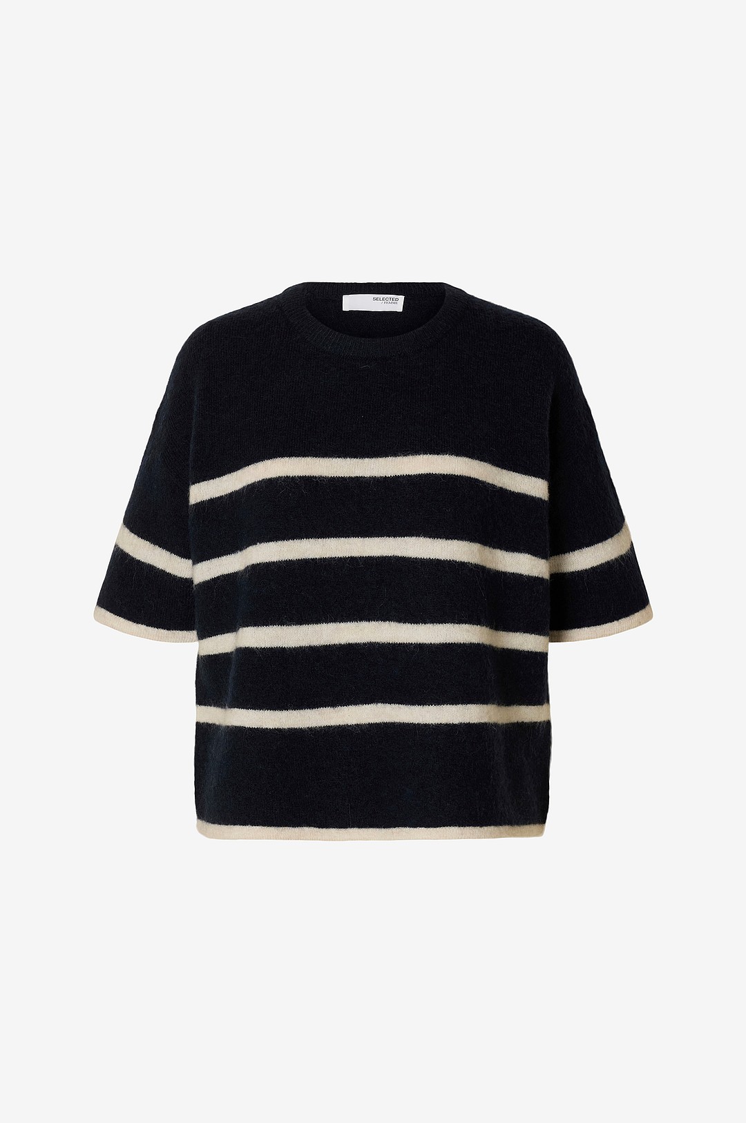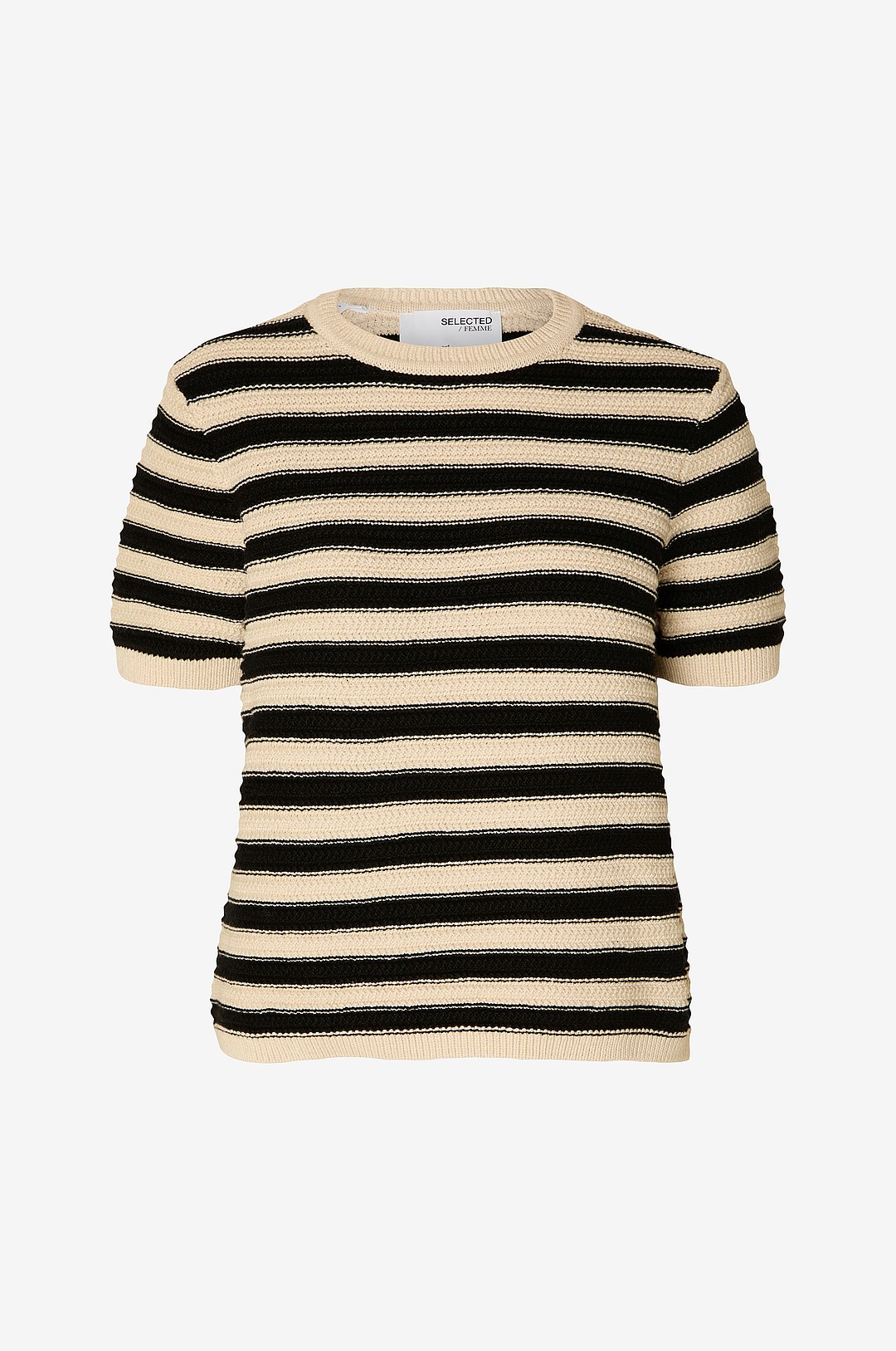 Selected FEMME - Tröja slfDora SS Knit O-neck - Svart