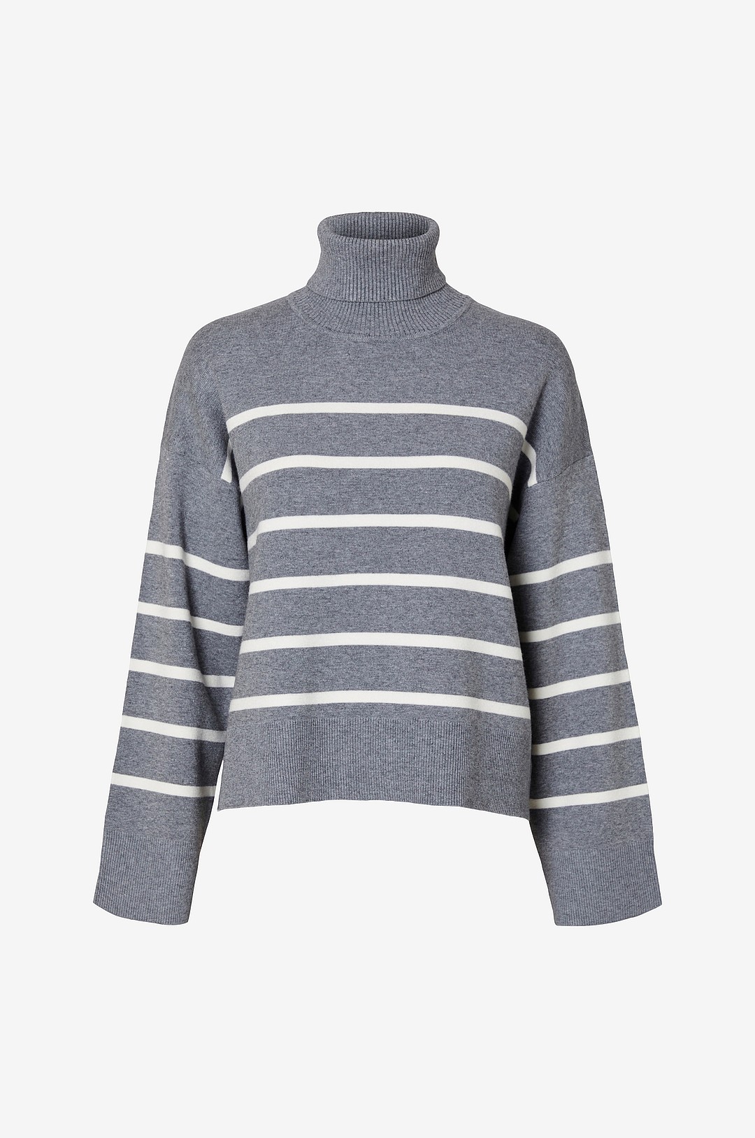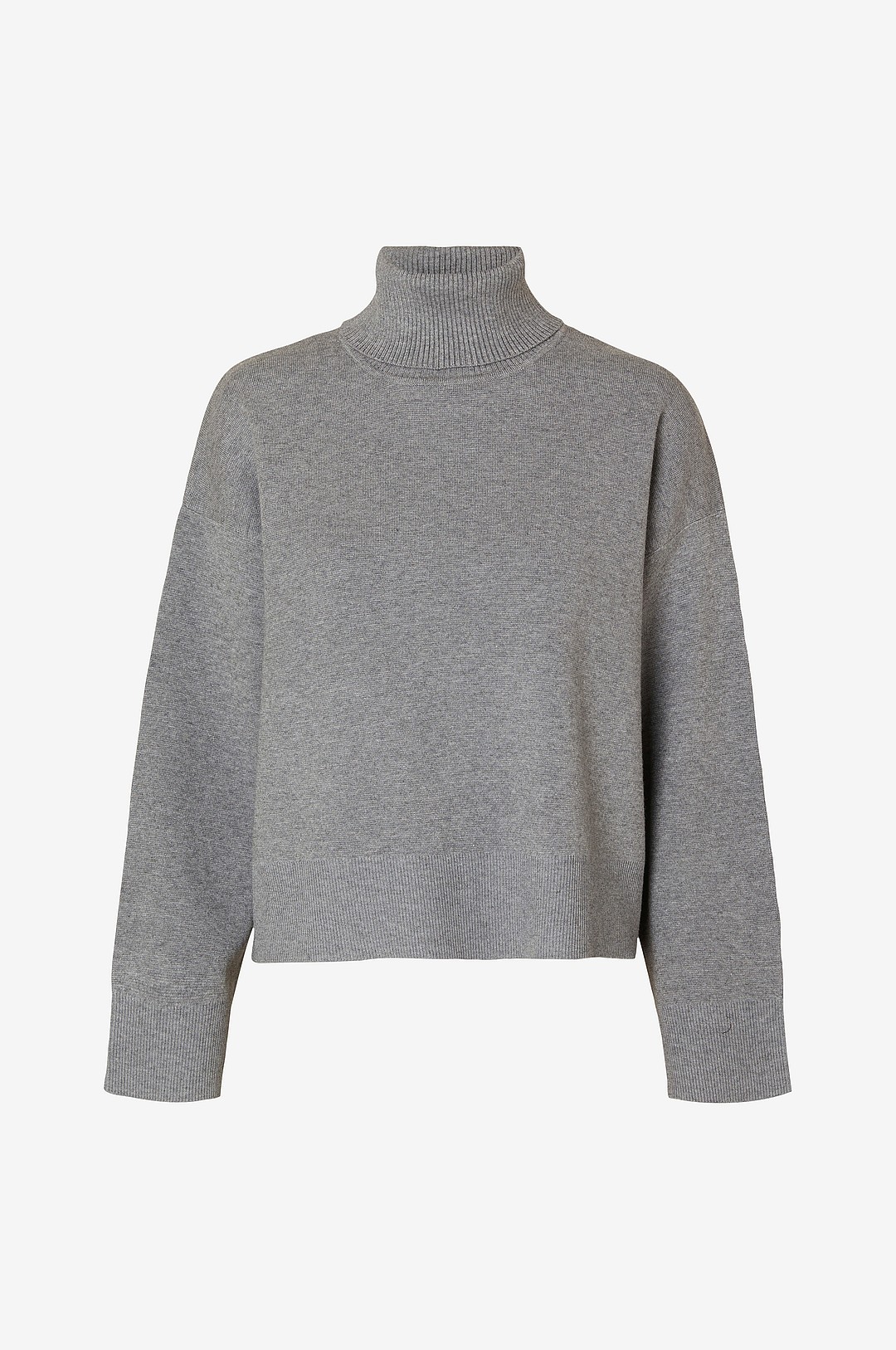 Selected FEMME - Tröja slfKamma LS Knit Roll Neck - Grå