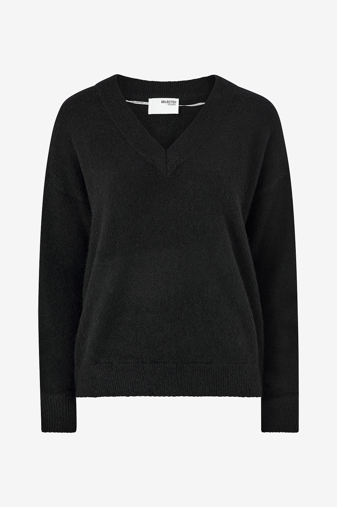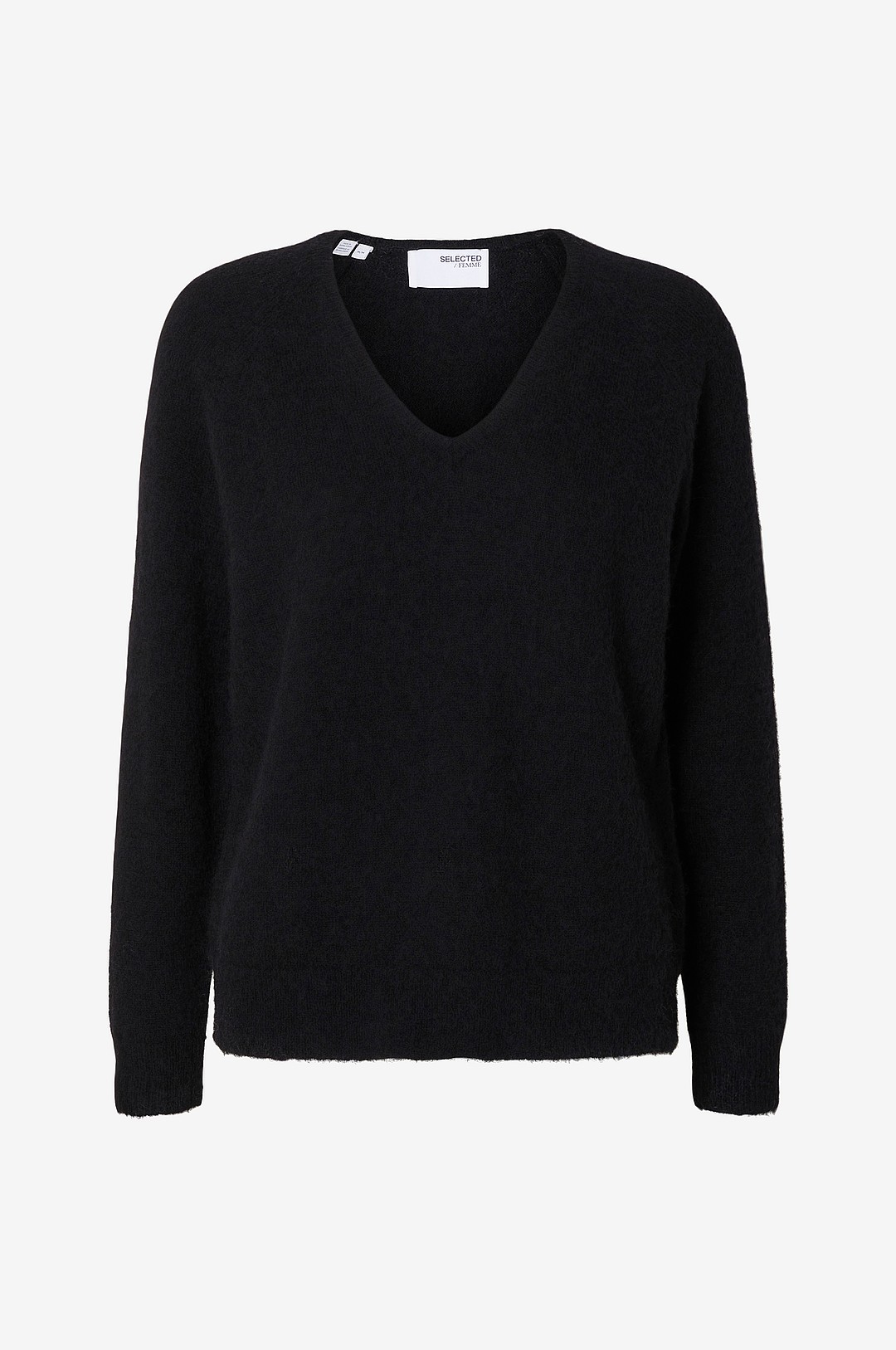 Selected FEMME - Tröja slfLulu New LS Knit V-neck B - Svart