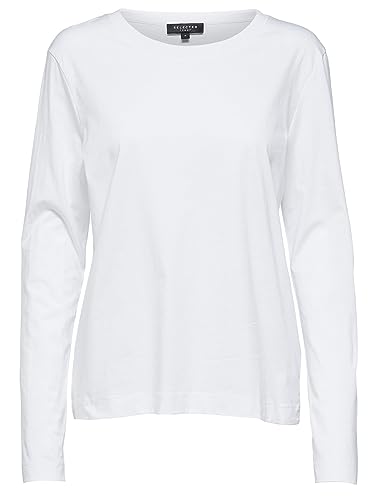 SELECTED Kvinnor Grundläggande Långärmad Tröja Tunna Långärmad Tröja SLFSTANDARD Bomull Sweatshirt, Color:White, Size:S