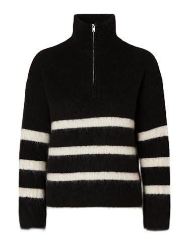 SELECTED FEMME Damer Slfkamma Ls stickad rulle hals Noos stickad tröja, Svart/ränder: björk, S