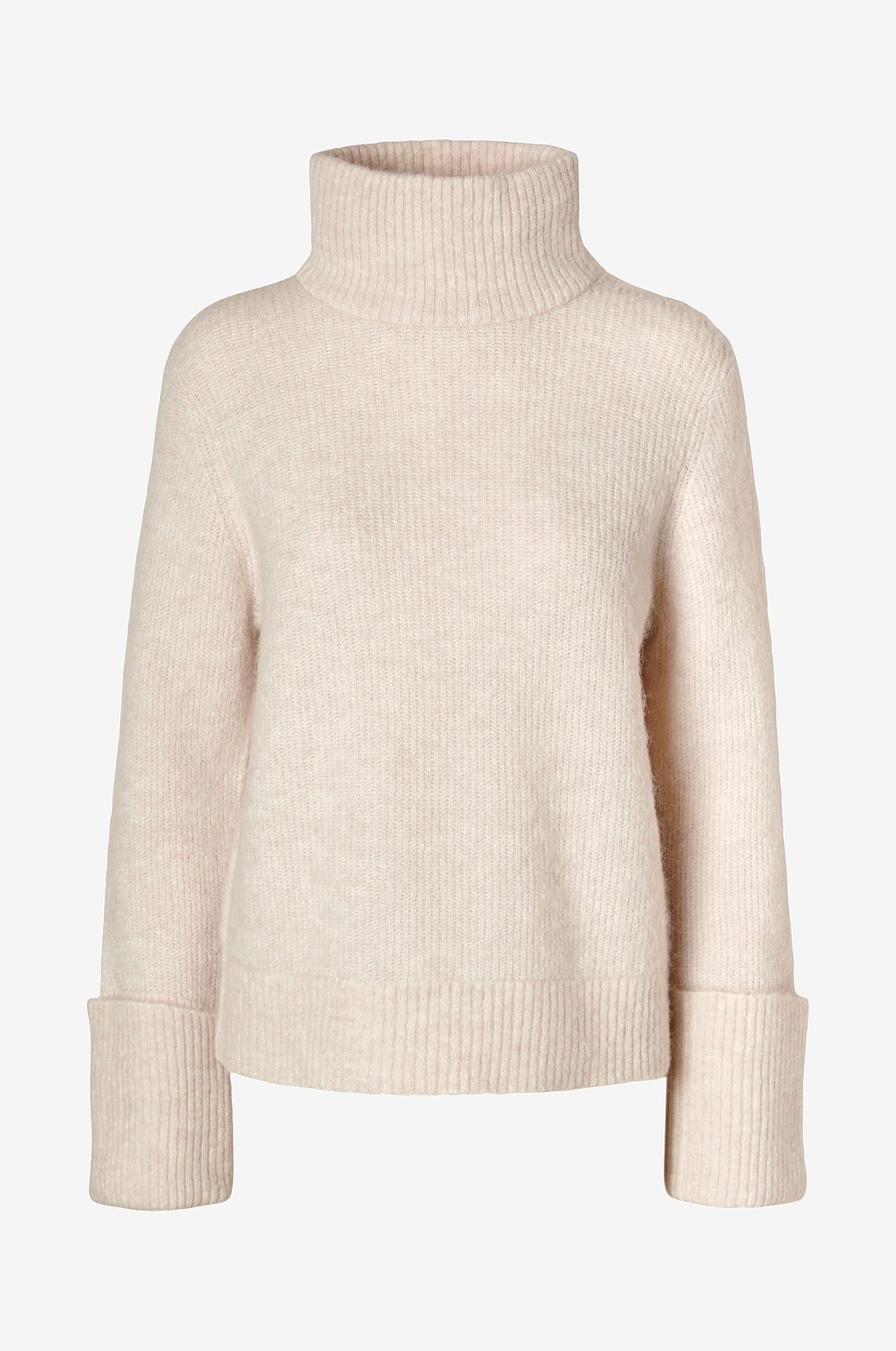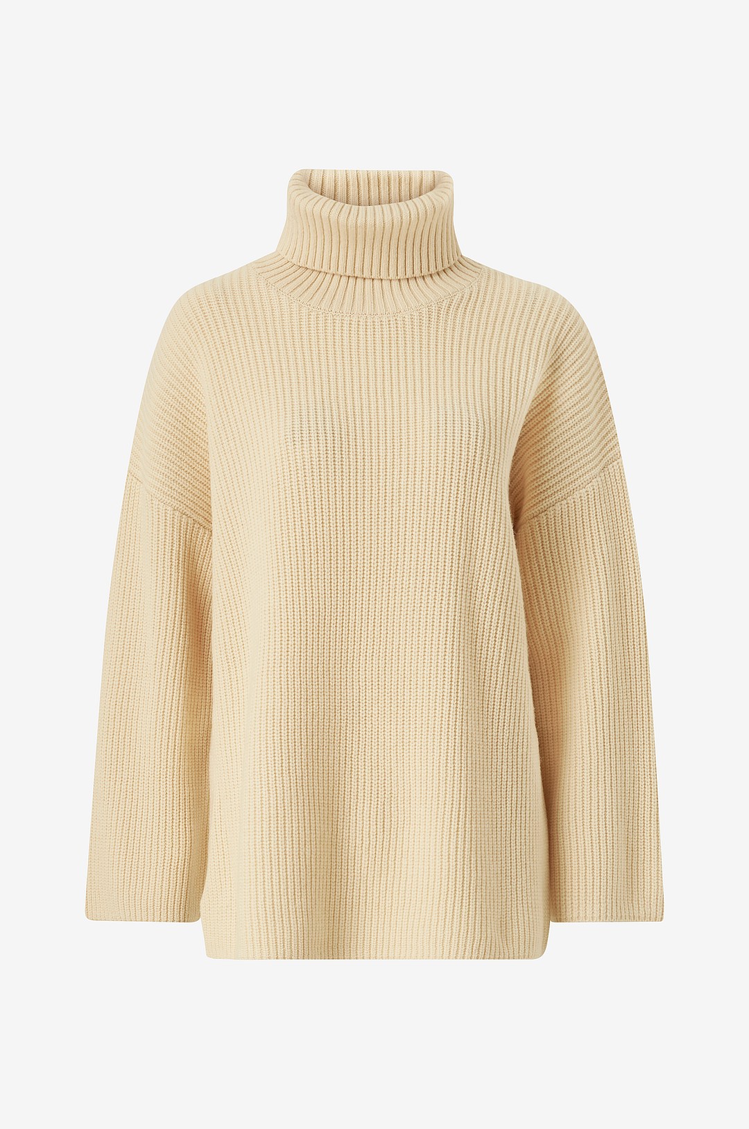 Selected FEMME - Tröja slfKamma LS Knit Roll Neck - Beige