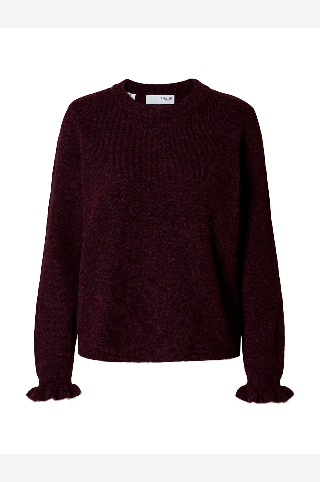 Selected FEMME - Tröja slfLulu LS Knit Frill Cuff O-neck N - Röd