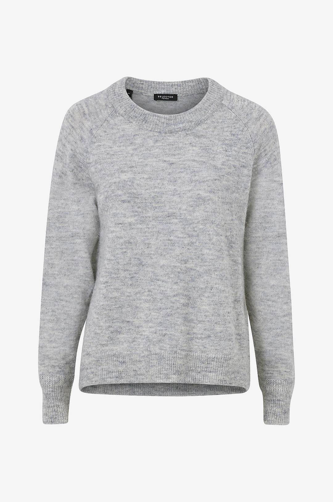 Selected FEMME - Tröja slfLulu LS Knit O-neck - Grå
