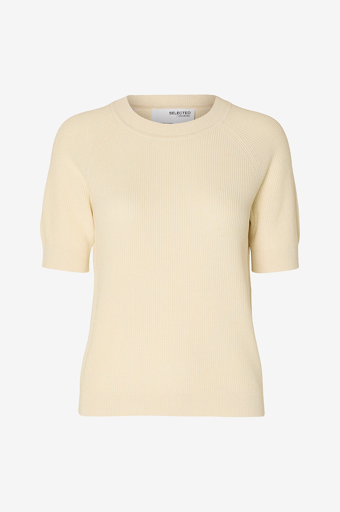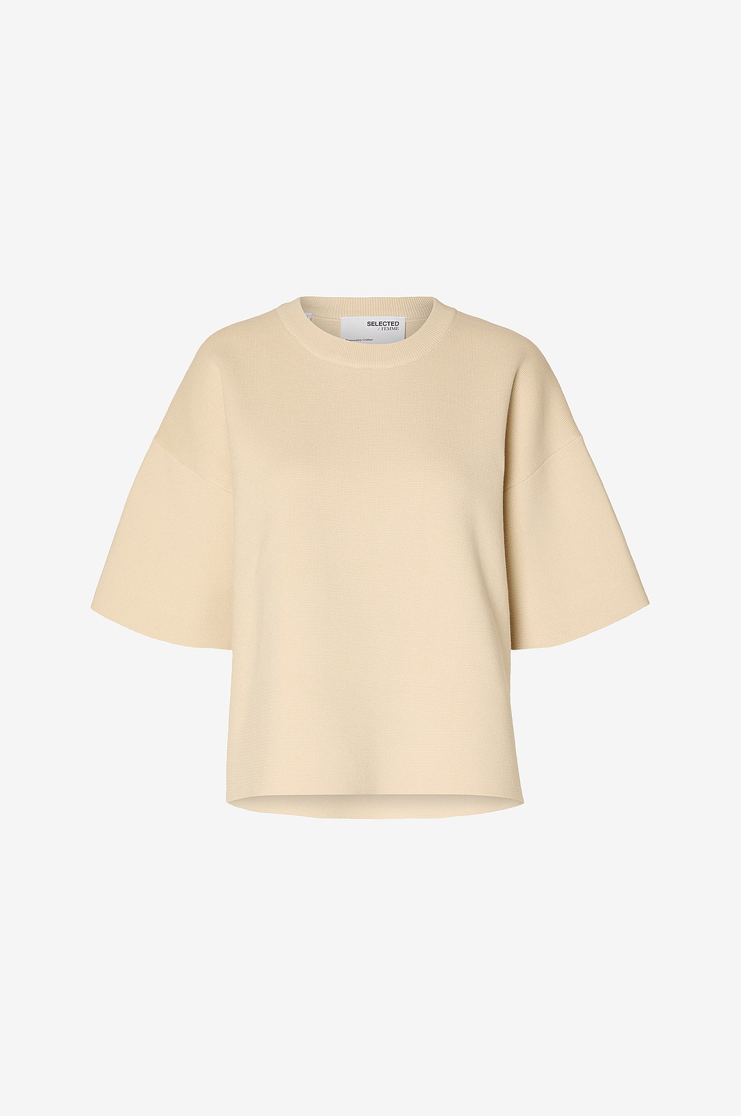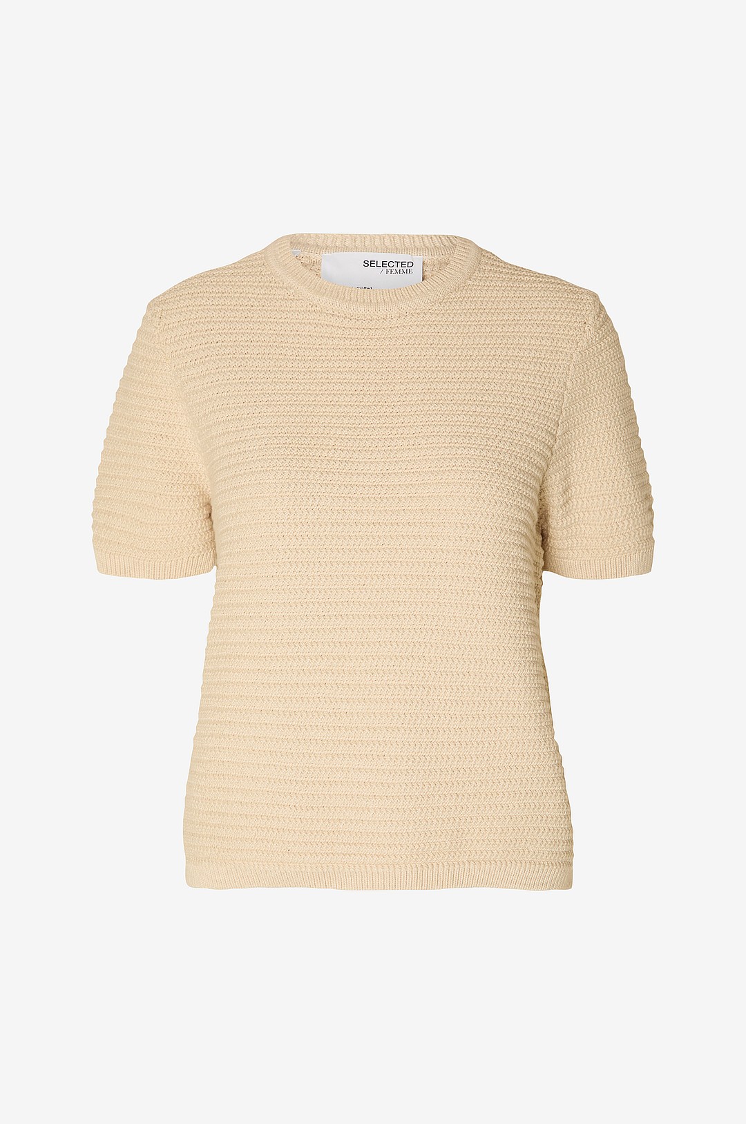 Selected FEMME - Tröja slfDora SS Knit O-neck - Beige