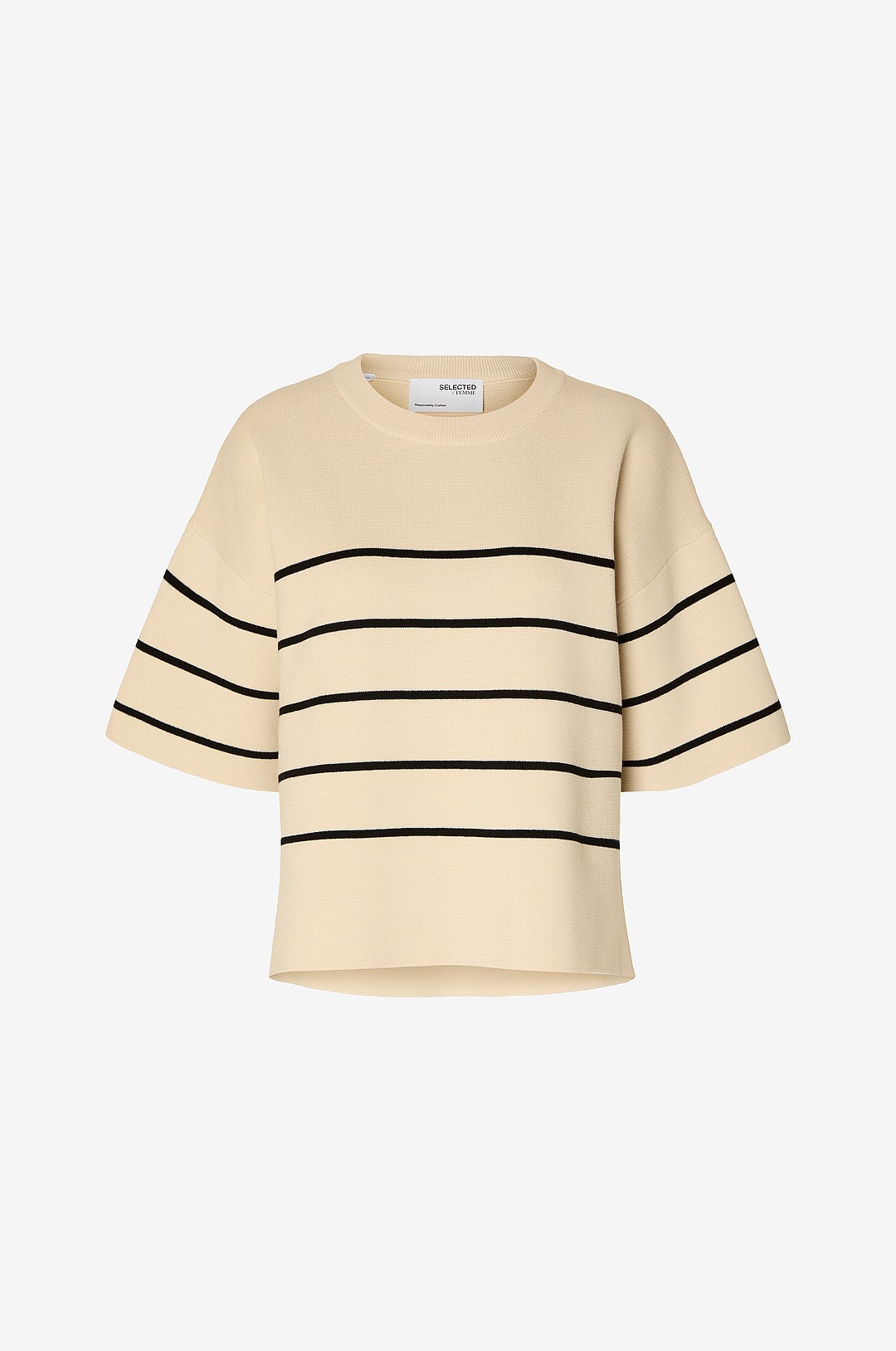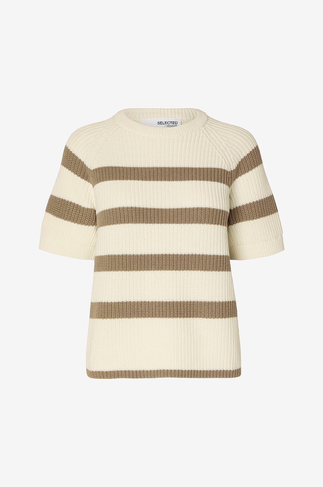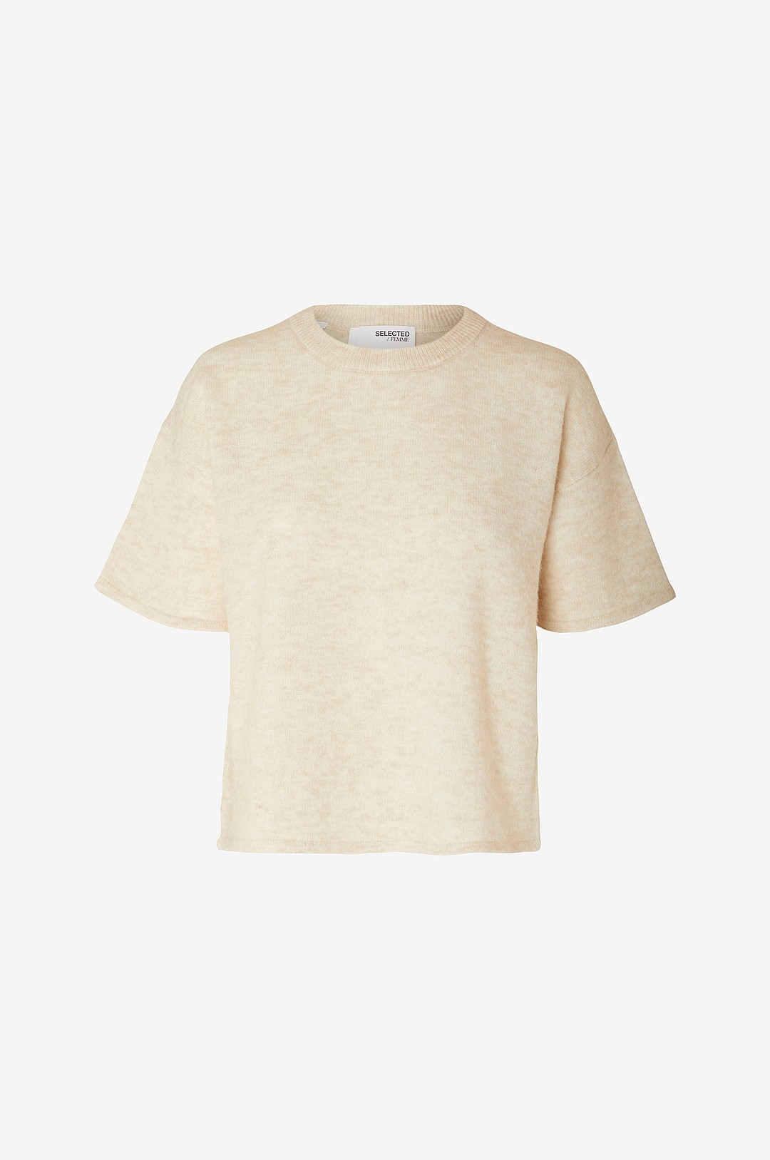 Selected FEMME - Tröja slfDora SS Knit O-neck - Beige