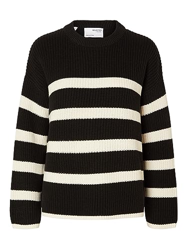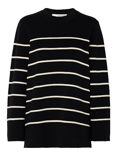 SELECTED FEMME stickad tröja för kvinnor oversize, Svart/ränder: björk, XS