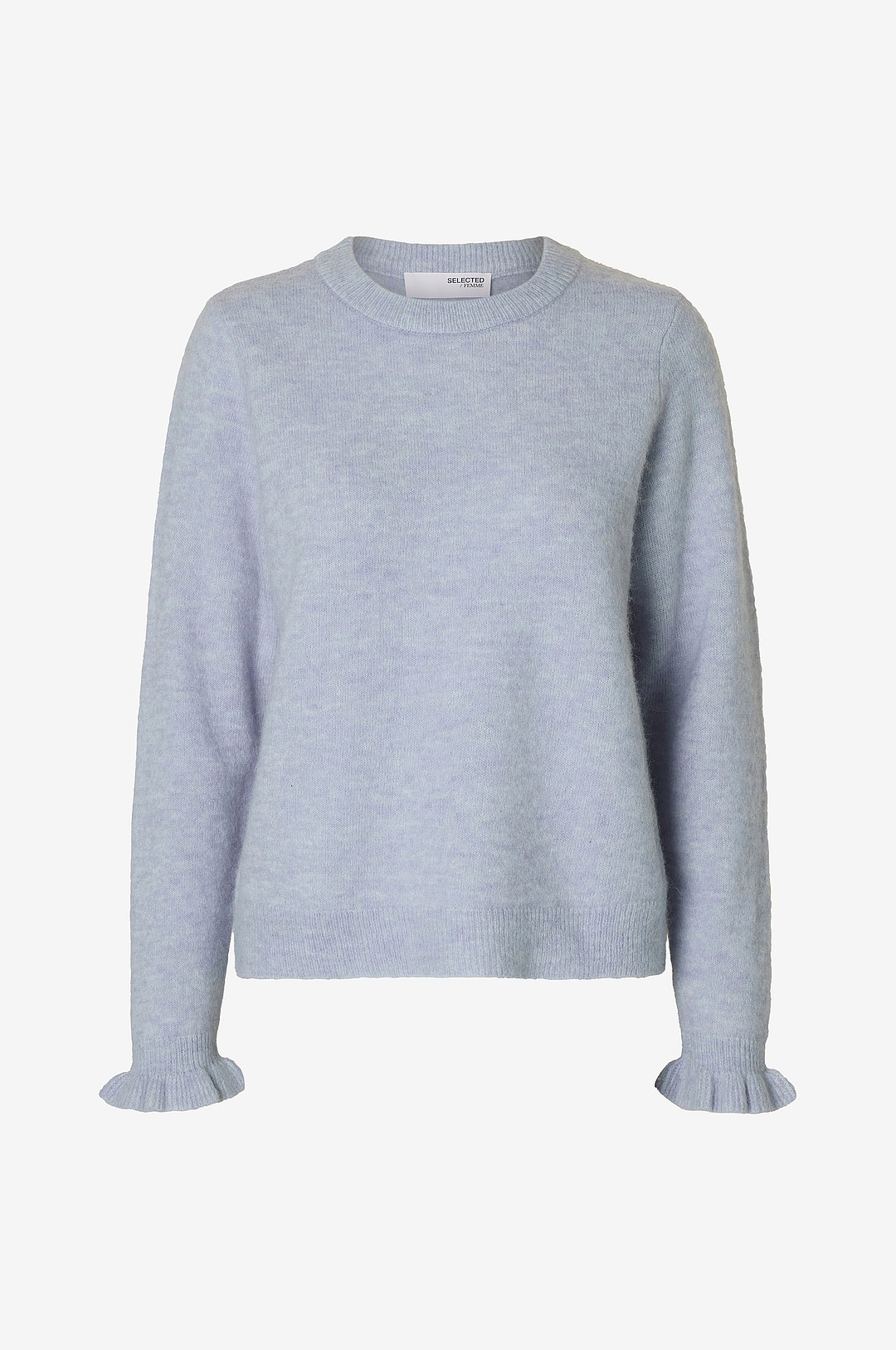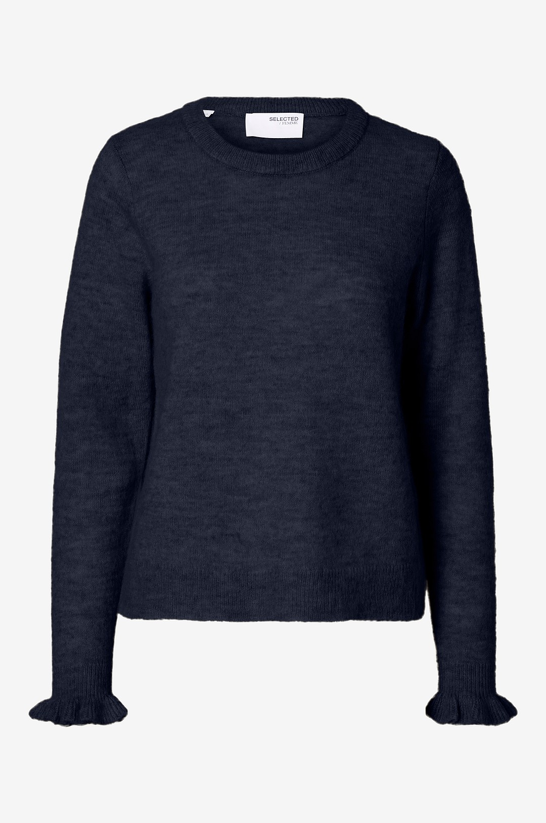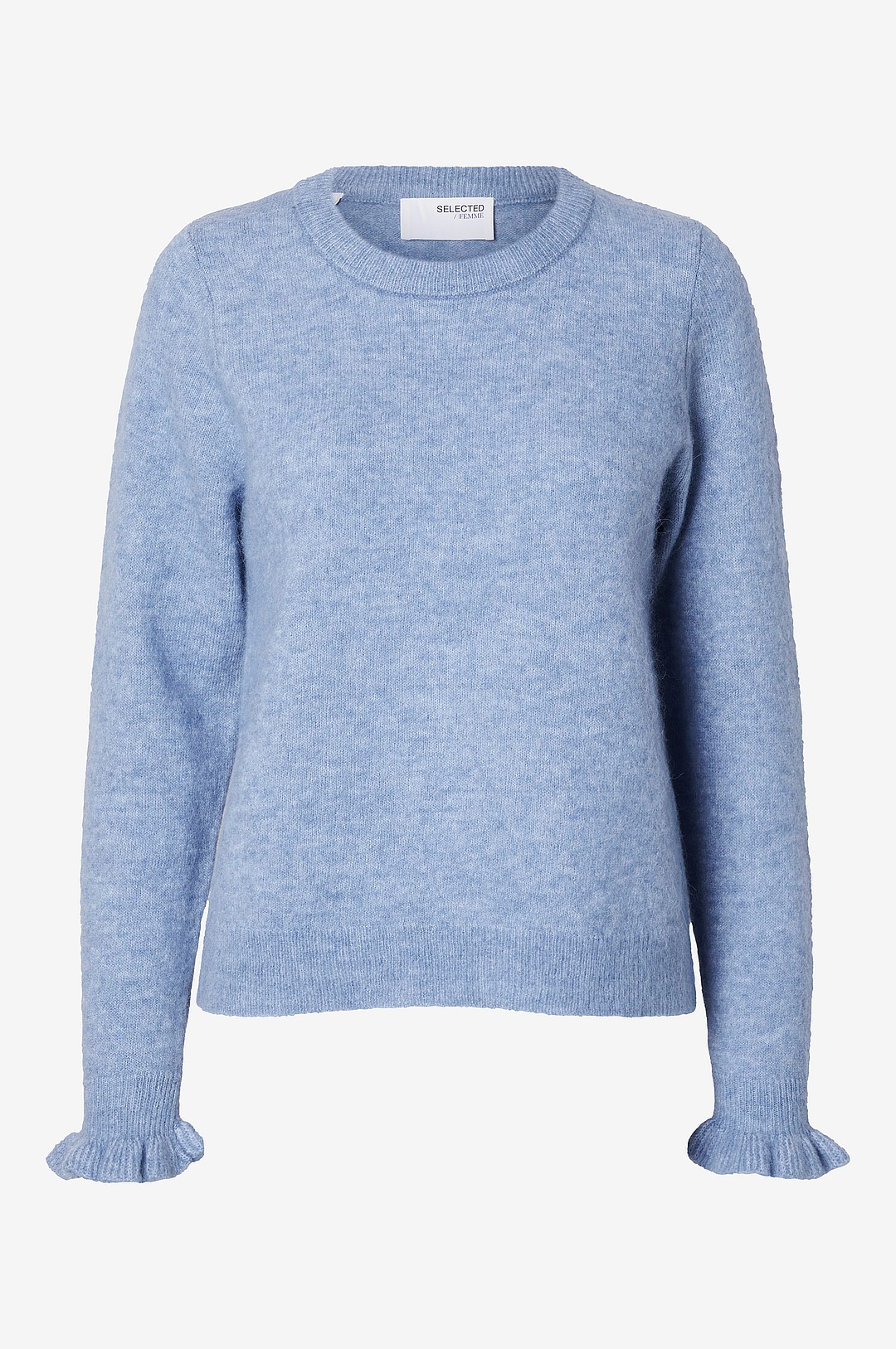 Selected FEMME - Tröja slfLulu LS Knit Frill Cuff O-neck N - Blå