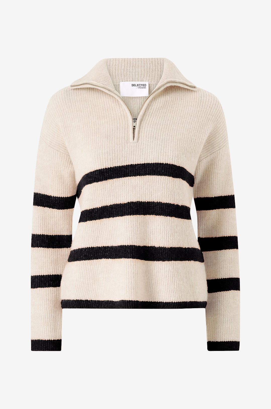 Selected FEMME - Tröja slfMaline LS Knit Half Zip - Beige