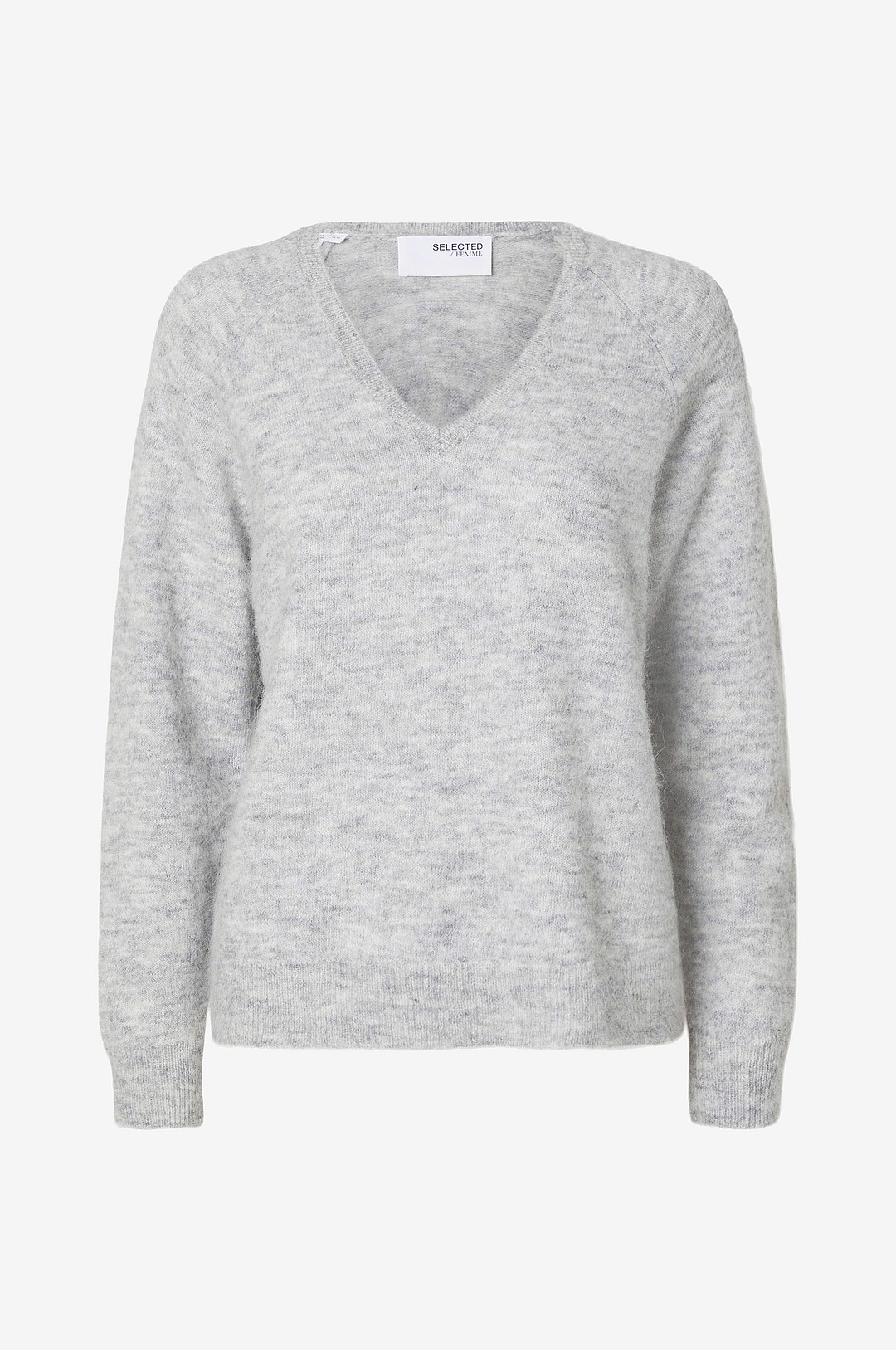 Selected FEMME - Tröja slfLulu New LS Knit V-neck B - Grå