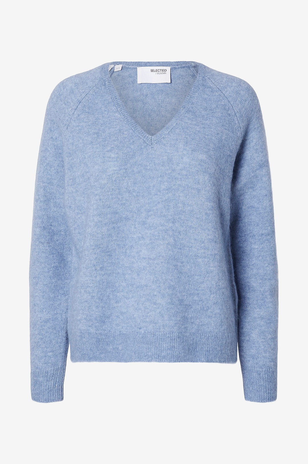 Selected FEMME - Tröja slfLulu New LS Knit V-neck B - Blå