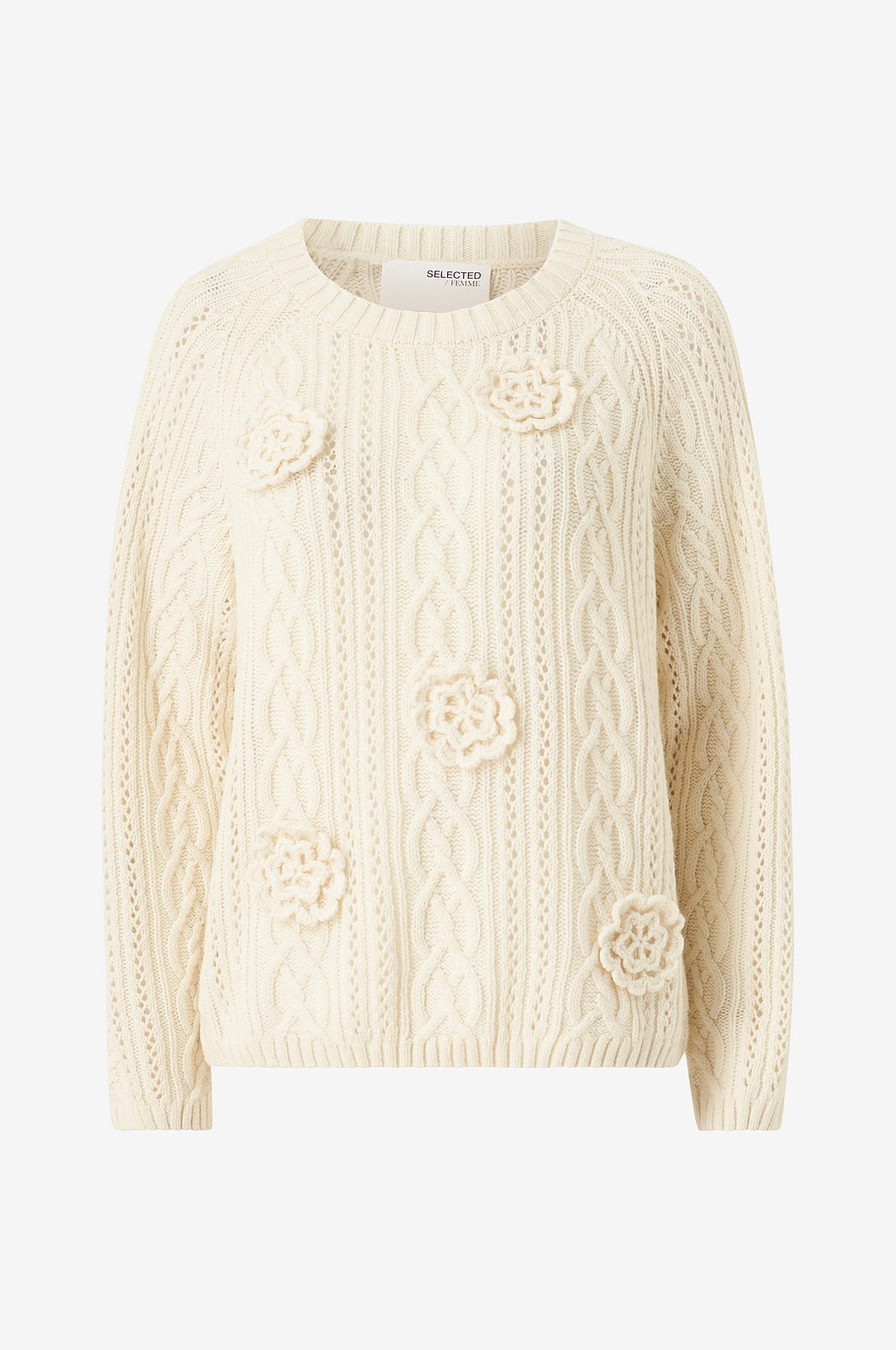 Selected FEMME - Tröja slFulrikke LS Flower Knit EX - Beige
