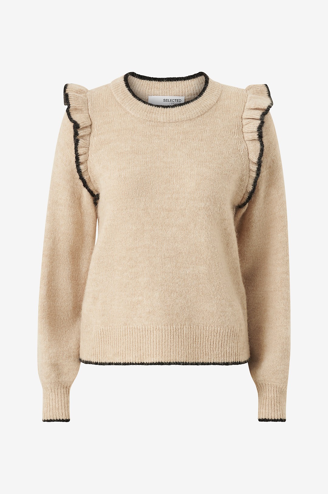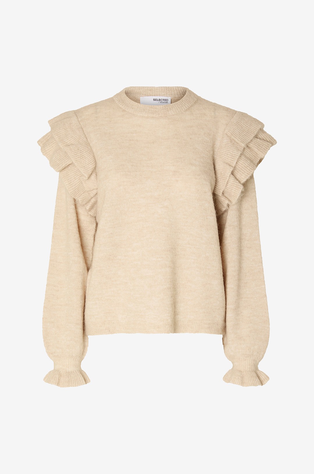 Selected FEMME - Tröja slfLulu LS Knit Shoulder Frills O-n - Beige