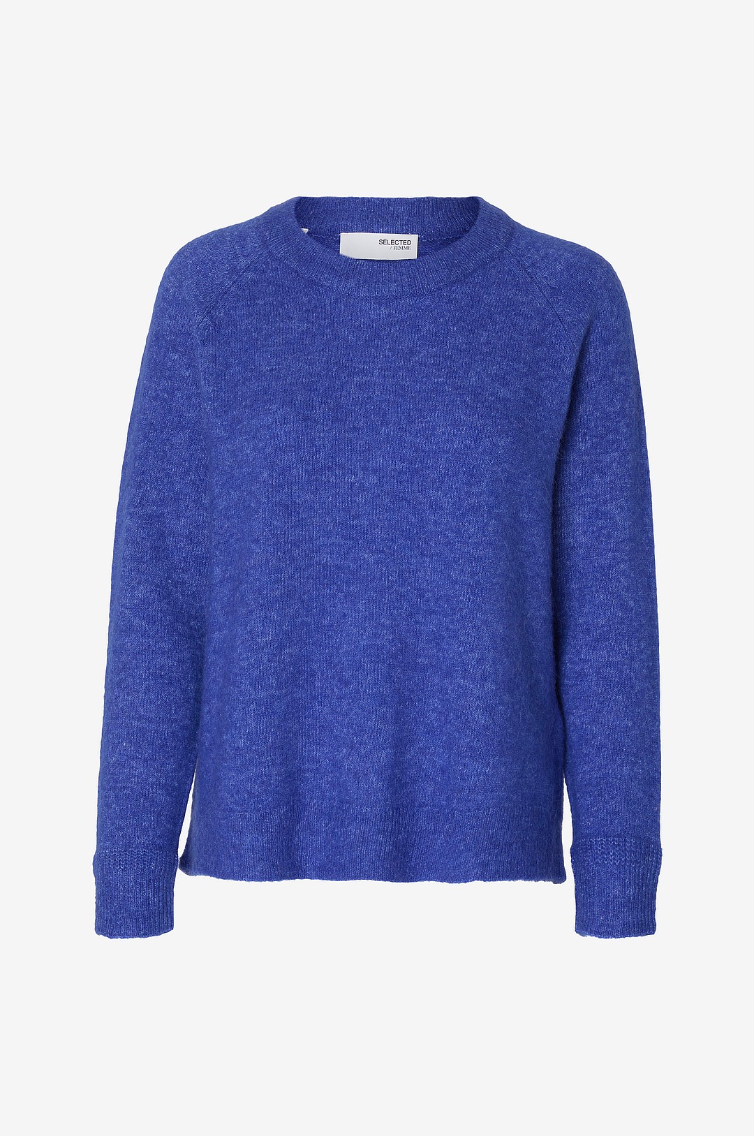 Selected FEMME - Tröja slfLulu LS Knit Rib O-neck - Blå