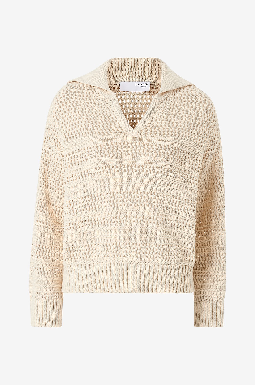 Selected FEMME - Tröja slfFina LS Collar Knit - Beige