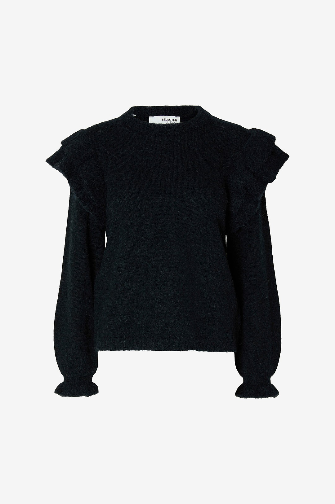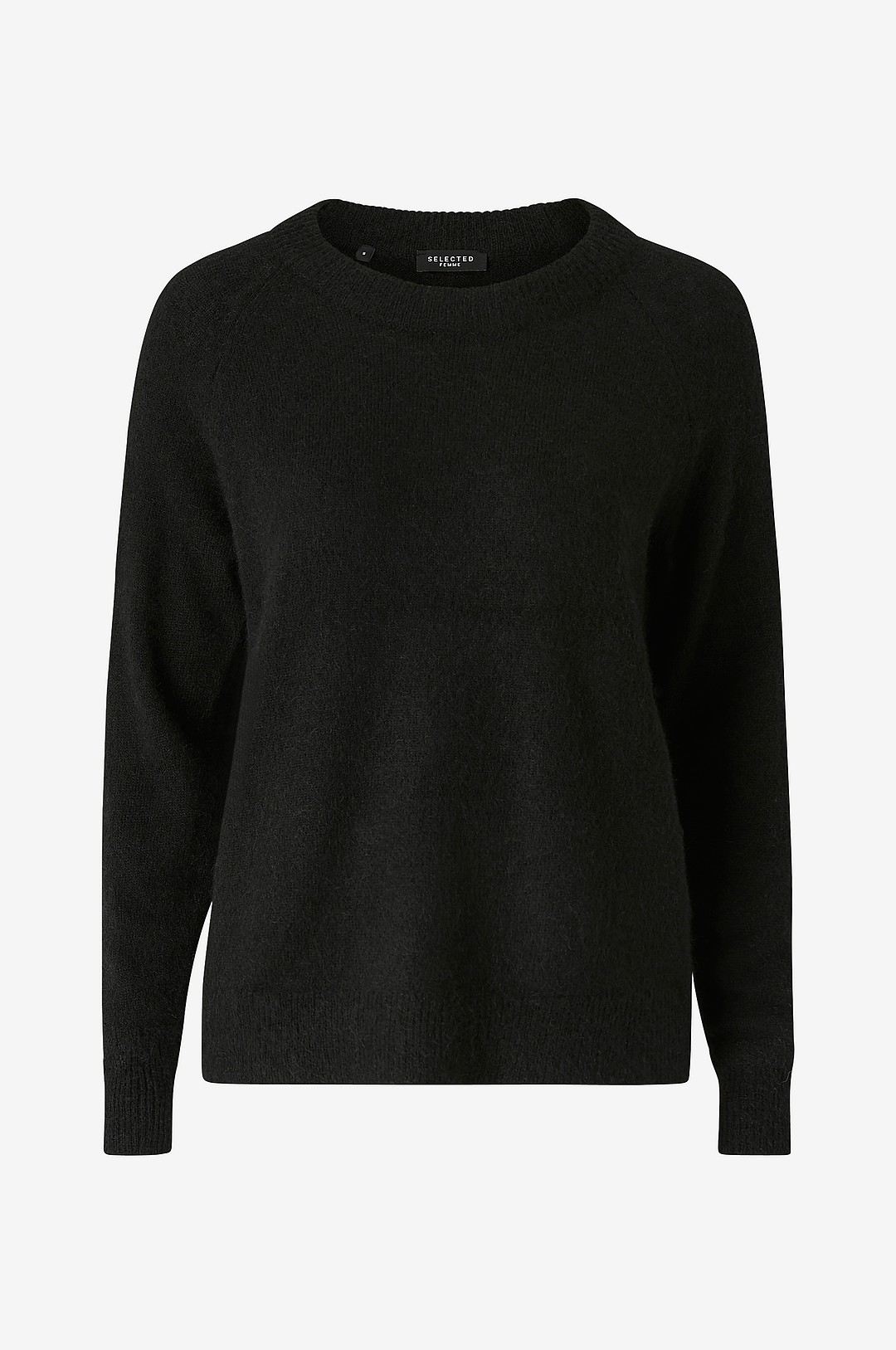 Selected FEMME - Tröja slfLulu LS Knit O-neck - Svart