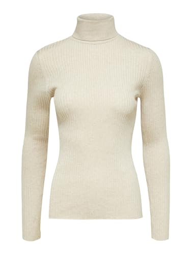 SELECTED FEMME Women's SLFLYDIA Costa LS stickad rullhals B långärmad tröja, björk, XL, Björk, XL