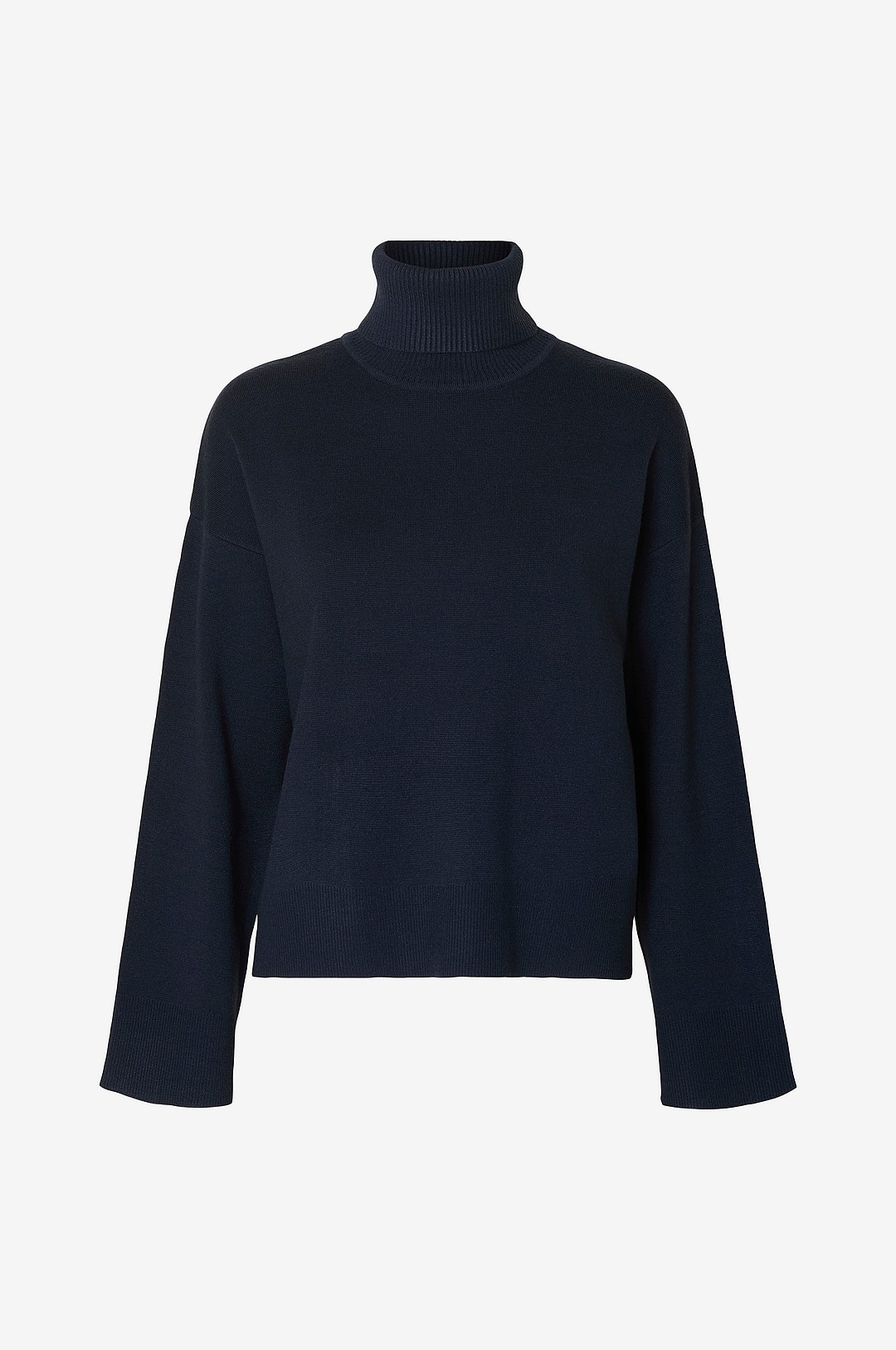 Selected FEMME - Tröja slfKamma LS Knit Roll Neck - Blå