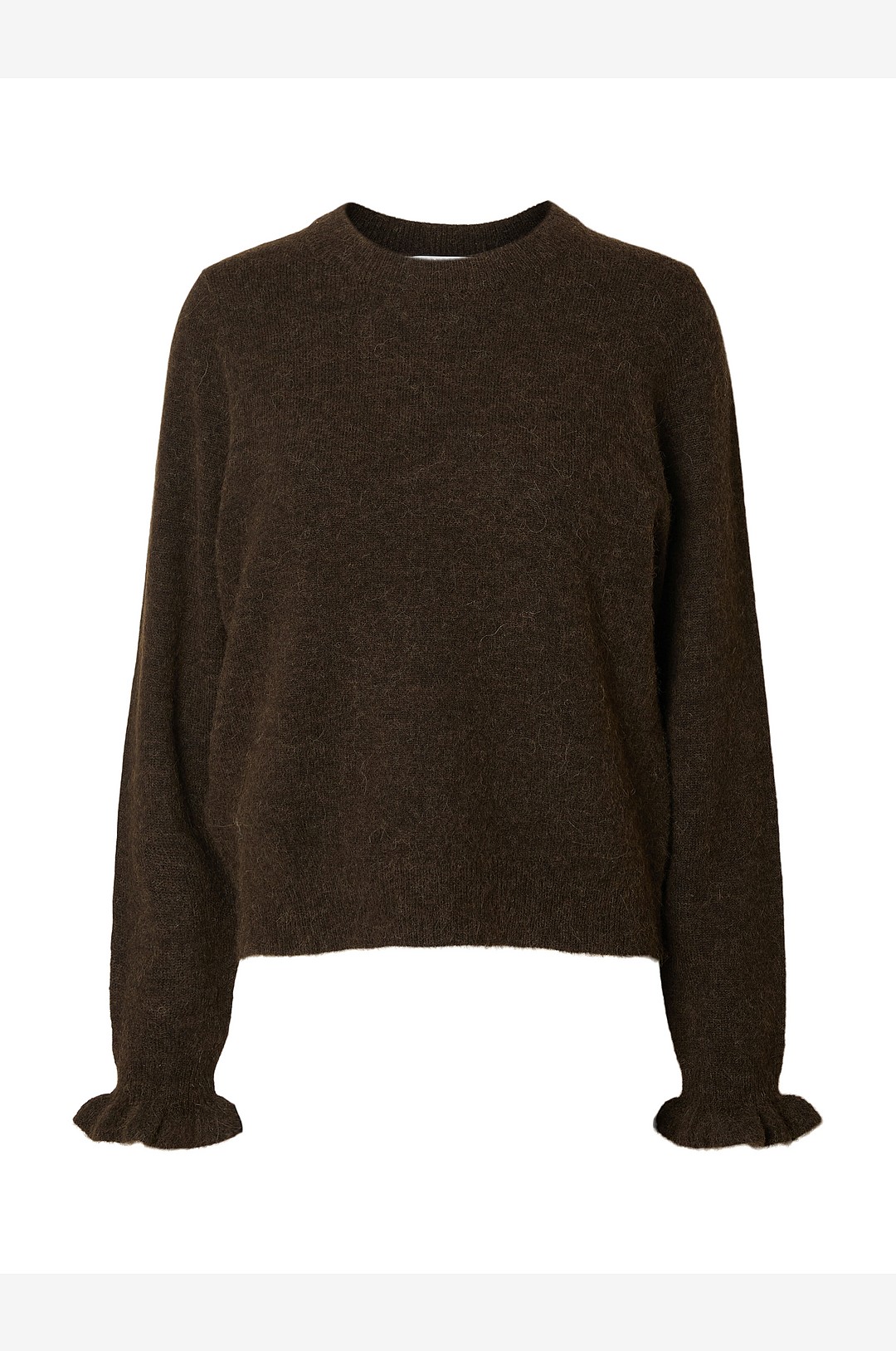 Selected FEMME - Tröja slfLulu LS Knit Frill Cuff O-neck N - Brun