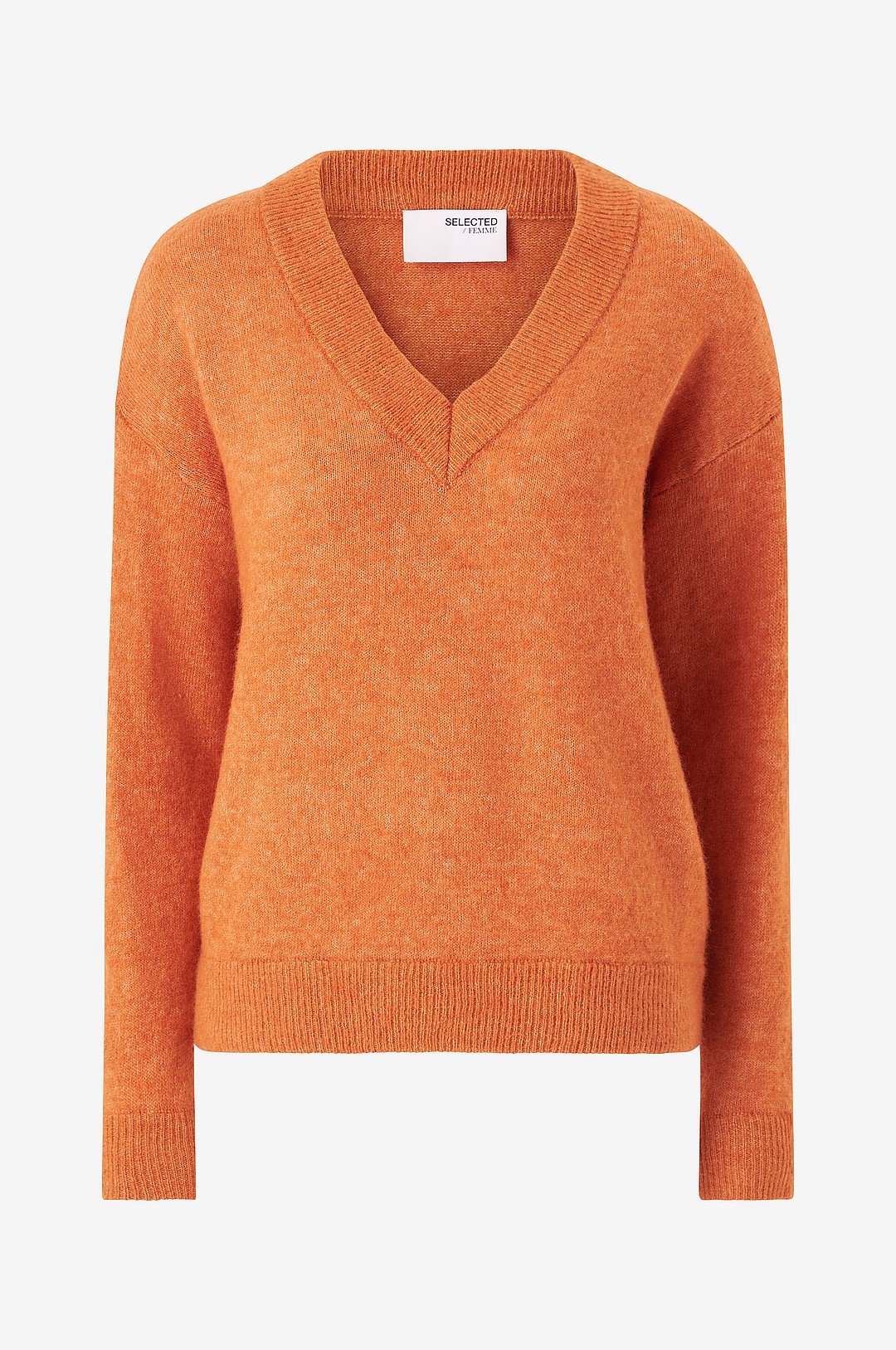 Selected FEMME - Tröja slfMaline lS Knit V-neck - Orange
