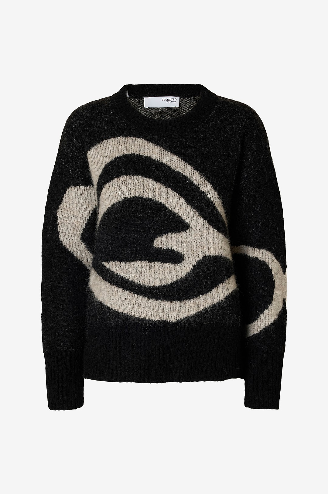 Selected FEMME - Tröja slfAlva Swirl LS Knit O-neck - Svart