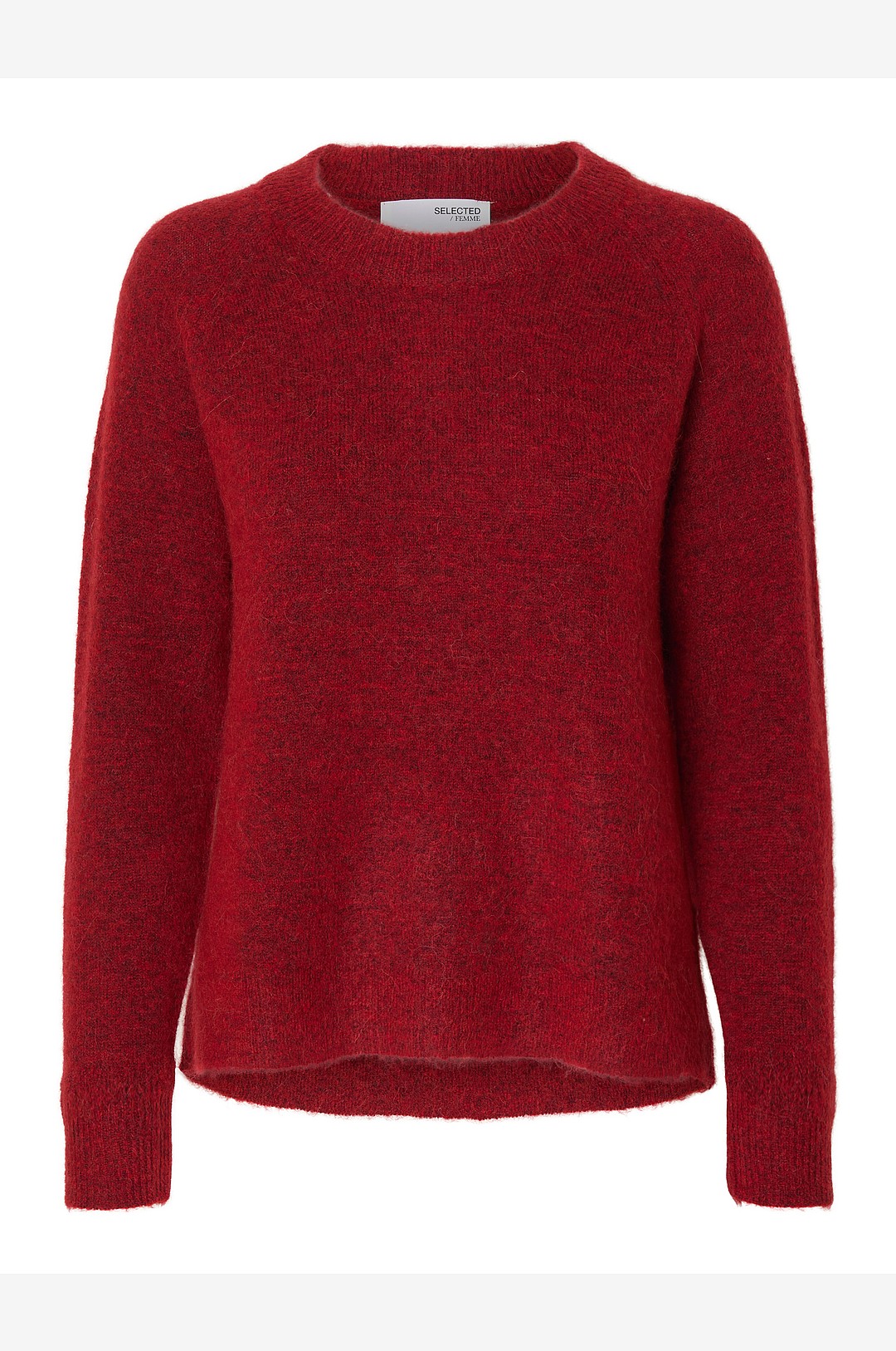 Selected FEMME - Tröja slfLulu LS Knit O-neck - Röd
